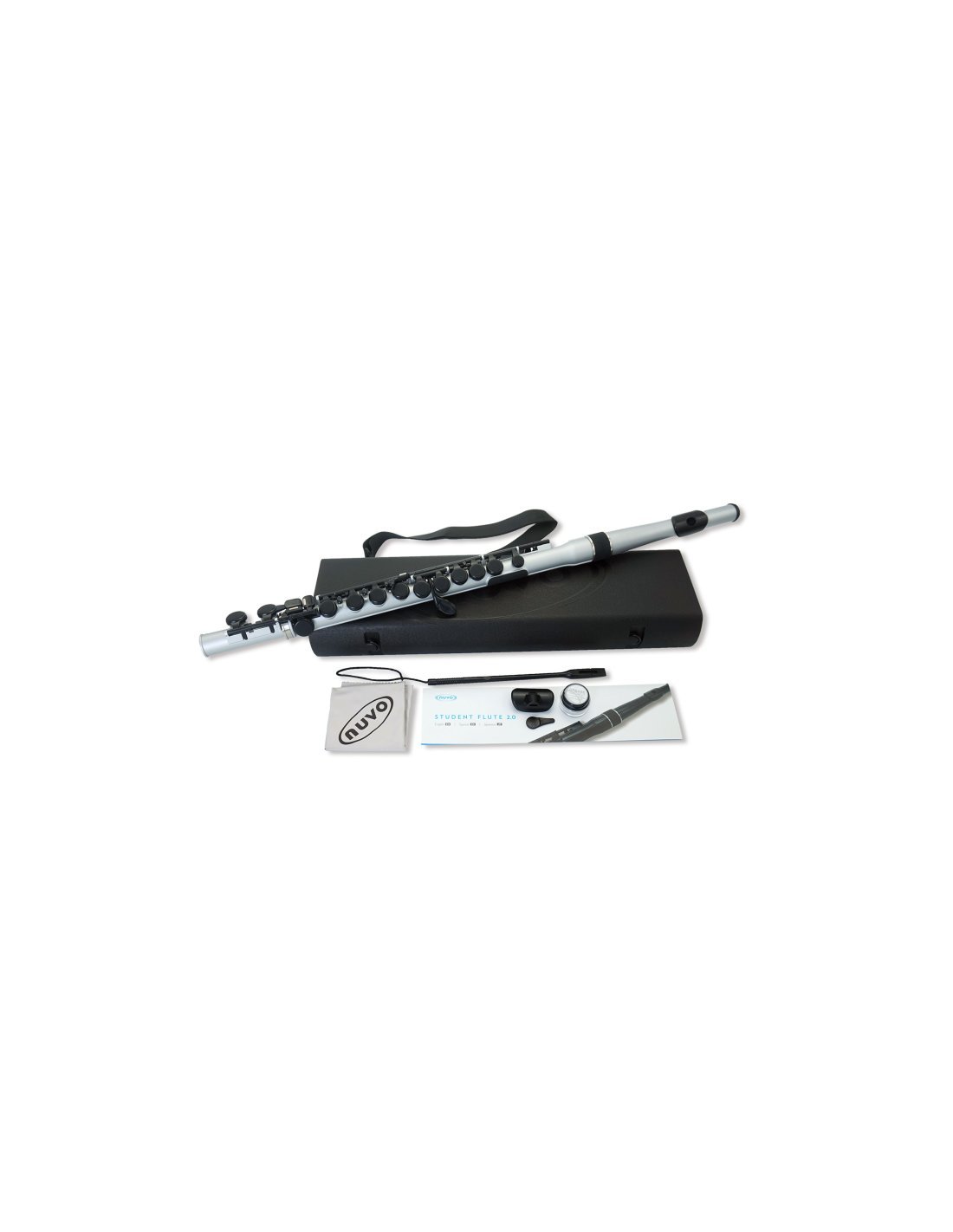 The Student Flute includes the straight headboard, standard and Firstnote mouthpieces, the main body with silicone comfort pads, the bass drum with DO foot, the cleaning cloth, the o-ring grease, the printed hard case and the carrying strap. Student Flute has a completely standard fingering and can be used for auditions, performances and lessons just like a regular silver flute.
