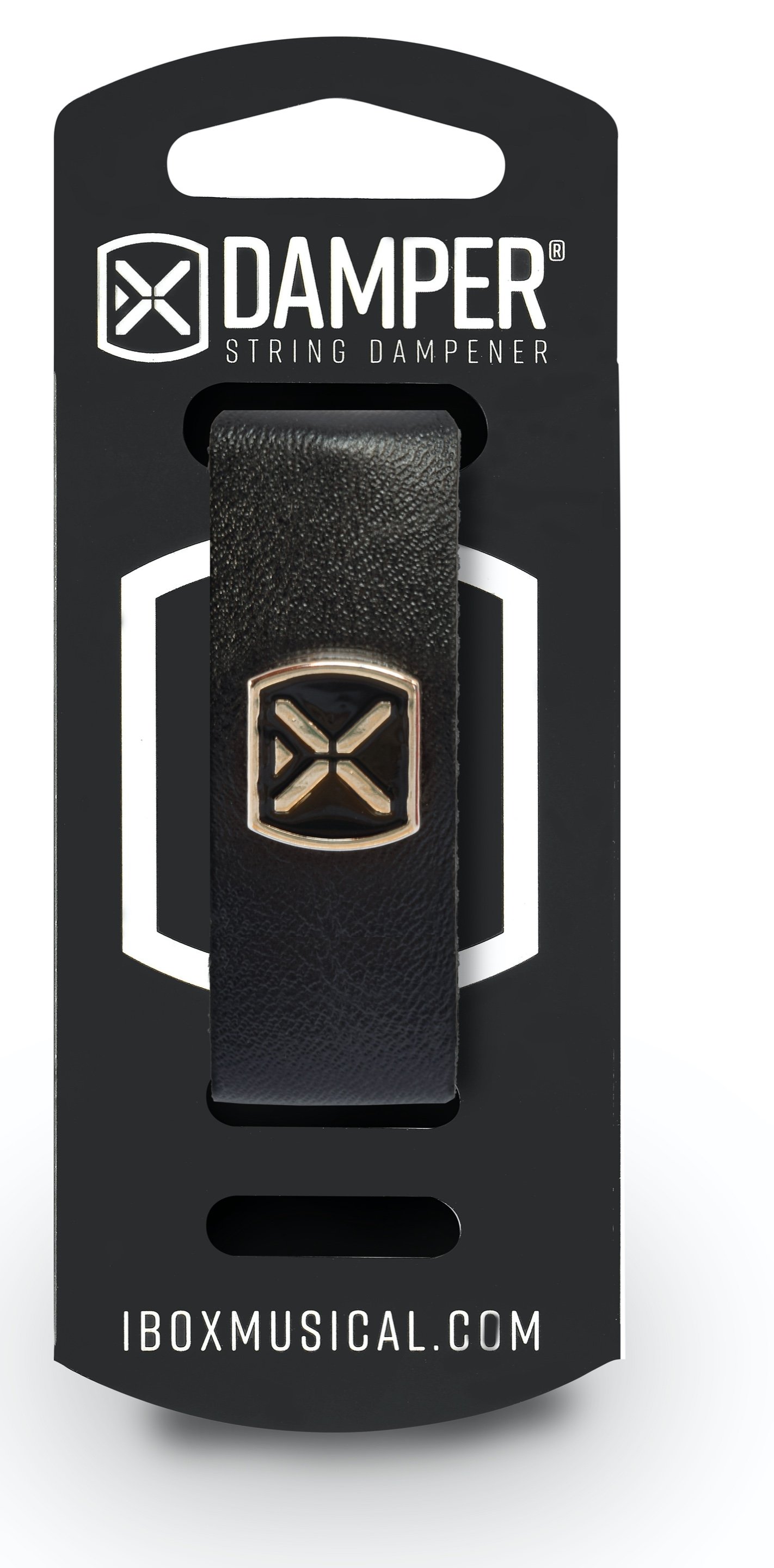 Damper for 7-string guitar and 6-string bass, in Leather, Metal Tag, color Black, Large size The I Box Damper is a professional silencer for guitar, bass and other string instruments, with excellent muting capacity, which allows only the reproduction of the sound of the strings played, giving greater cleaning of performance, useful both for studio recordings and for live performances. Features:Large Size Metal Tag Damper For 7-string guitars, 6-string electric bass and other instruments
