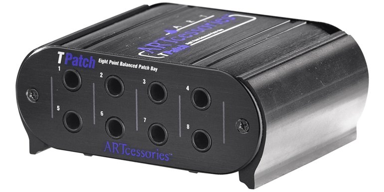 The ArtCessories TPatch is a compact 8-point balanced patch bay that organizes your cables in one convenient location on your studio desk. Designed for maximum flexibility, the TPatch has 1/4" TRS connectors and selectable normal and half-normal modes. The compact anodized aluminum case and its passive design allow the TPatch to guarantee years of flawless operation. Connectors: 1/4" TRS Balanced Jack. CMRR: -90 dB. Isolation: -80 dB. Dimensions (inches): 1.85 x 4.6 x 3.9 Dimensions (mm): 47 x 117 x 99. Weight: 0.84lbs/(0.38kg)