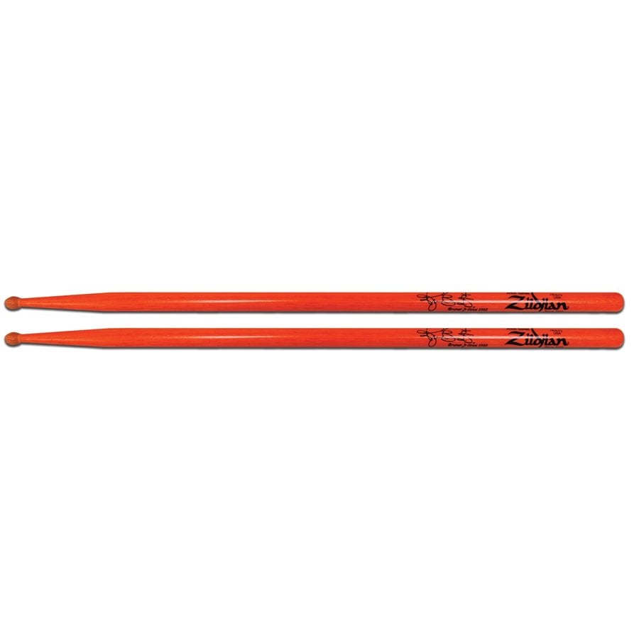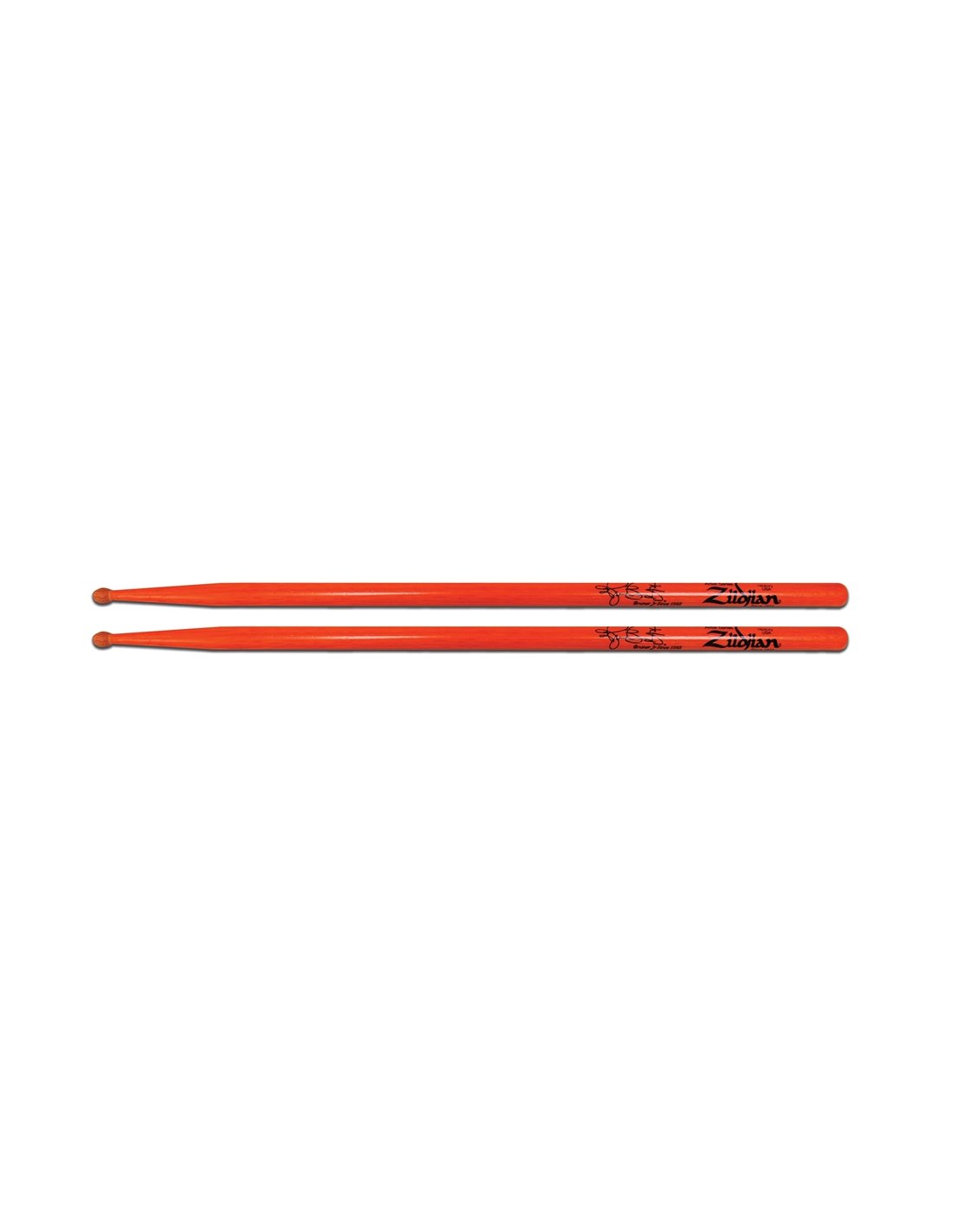The Zildjian ZASRB Artist Series drumstick is the 5A-like orange drum stick, which offers an optimal balance feeling and glows under black light.