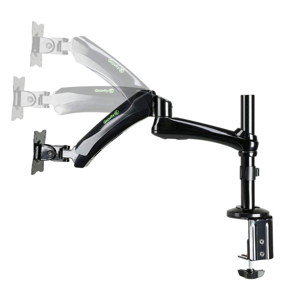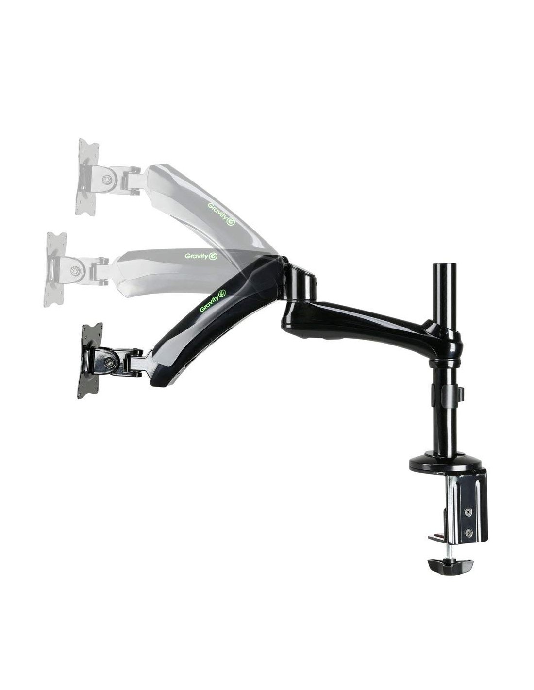 GRAVITY SA6131B. Table screen support with swivel and adjustable arm, adjustable height, made of steel and aluminum with cable grommet, fixing clamp with protective gasket. Suitable for 13"-27" screens