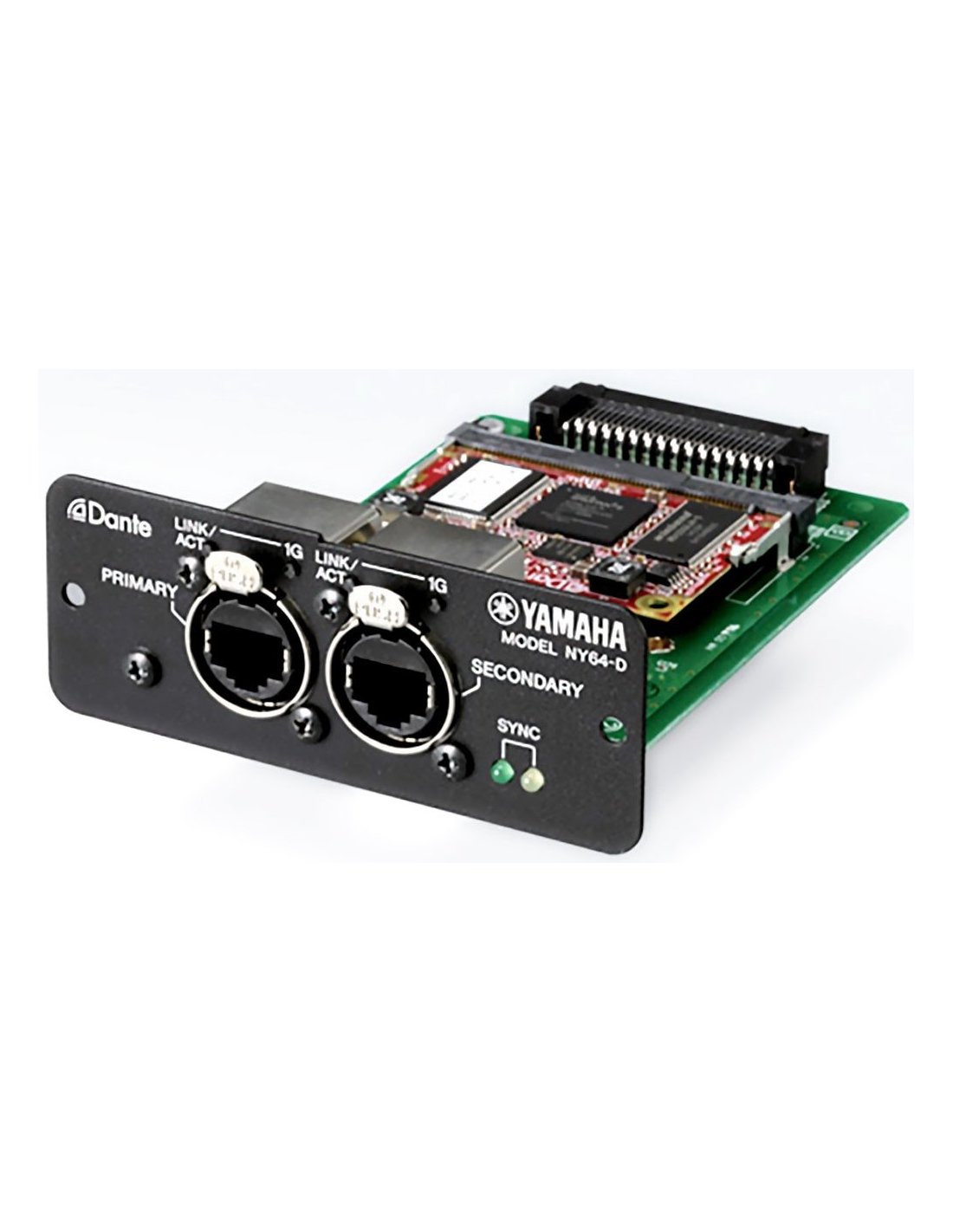 The Yamaha NY64D is an I/O expansion card for TF series consoles; thanks to the Yamaha NY64D it is possible to transmit and receive 64 input and output channels of uncompressed data with a digital audio quality of 48 kHz/24 bit.