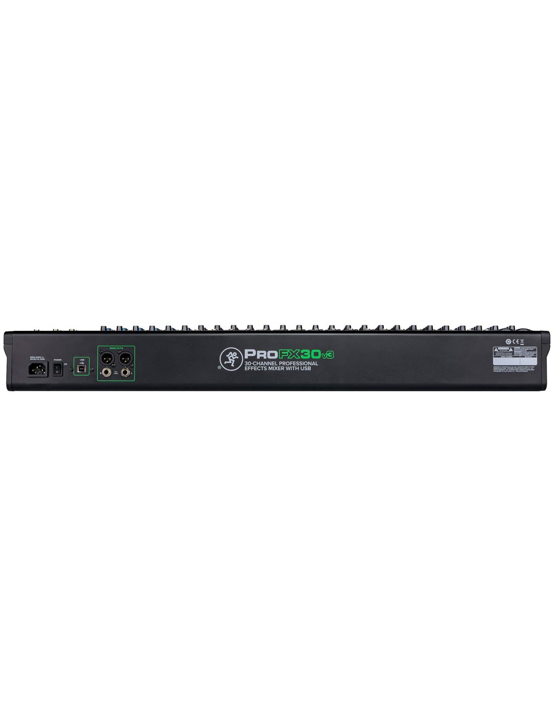 Professional 30-channel mixer. 25 Mackie ONYX microphone preamps + 60db GAIN with 2 Hi-Z COMBO, phantom, 3 band, 4 compression knobs Low cut, Insert and fx footswitch. Solo pre-fader, AUX/MONITOR OUTPUT, Dual Stereo Subgrup bus output. Output headphones with own control. Interface 2x4USB 24bit 192kHz.. Dimensions: 206 x 721 x 518mm. Weight: 11.1 Kg