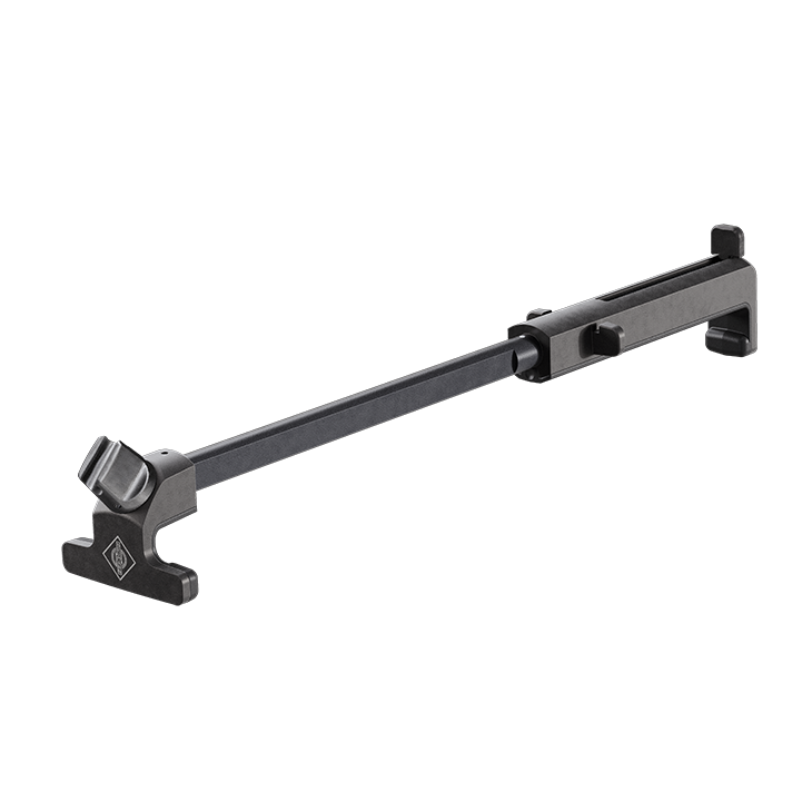 Clip per montare il collo d'oca MCM sulla fascia di un contrabbasso, fornita con pezzo di riduzione.