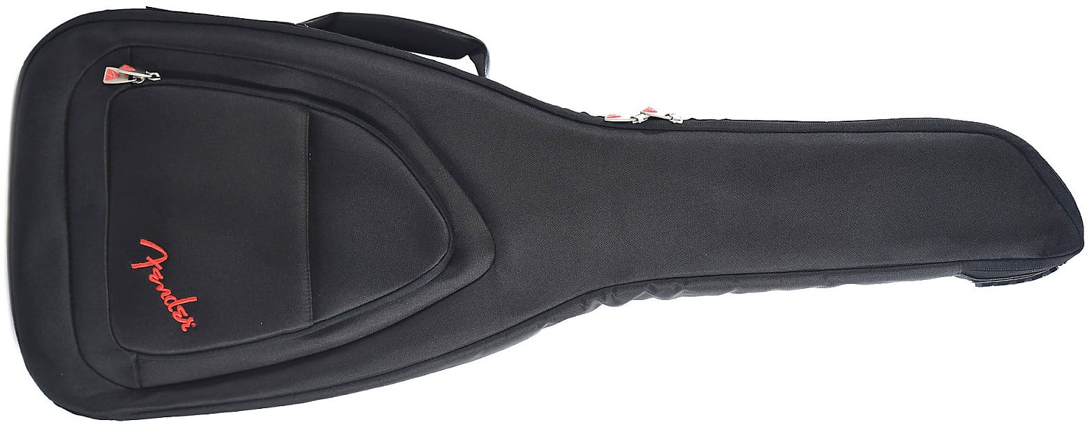 Fender FE620 Gig Bag Electric Guitar Soft Case. The Fender FE620 Gig Bag Electric is a 600 denier polyester soft electric guitar case with 20 mm padding, microfiber lining, neck support, shoulder strap attachment protection system, front storage pocket with window for business cards, pocket for extra strings, removable padded case, pocket for pick