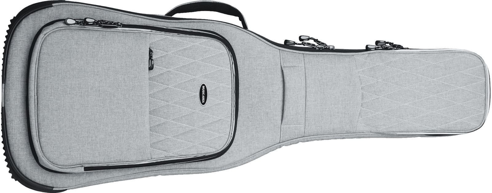 MUSIC AREA TANG30-EG ELECTRIC GUITAR BAG GREY. Gigbag for electric guitar with 360-degree reinforced ABS shell, 30 mm padding with 6 layers, water-repellent and wear-resistant nylon fabric, neck support with velcro closure, removable bumper to protect the strap button, large pocket for accessories