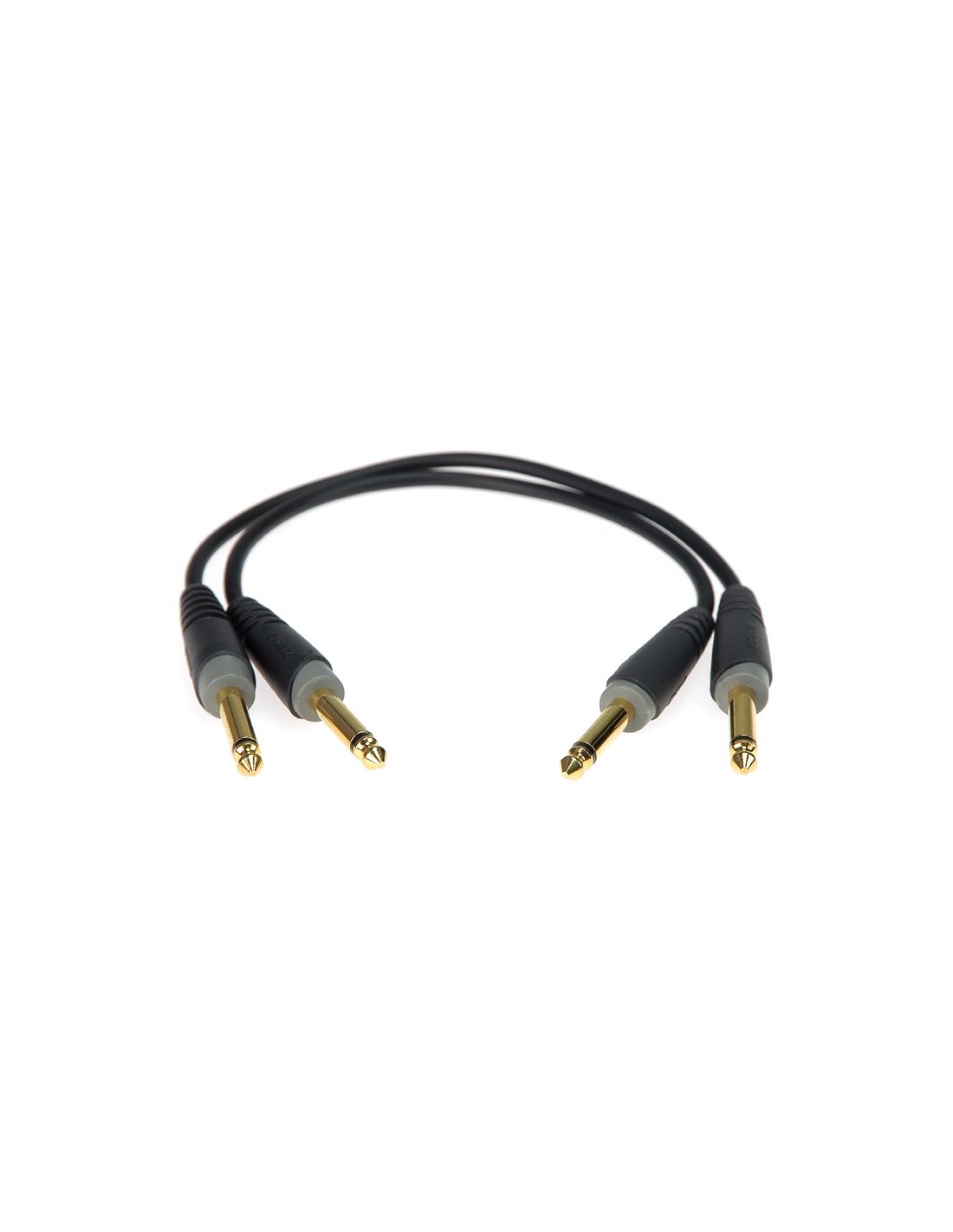 Klotz AU-JJ0060 J/J patch cable 15cm. The Klotz AU-JJ0060 is a musical instrument cable designed to connect effects or cable pedals; this patch cable is equipped with two 6.3 mm male mono jack connectors and is characterized by a sturdy black PVC coating and has a length of