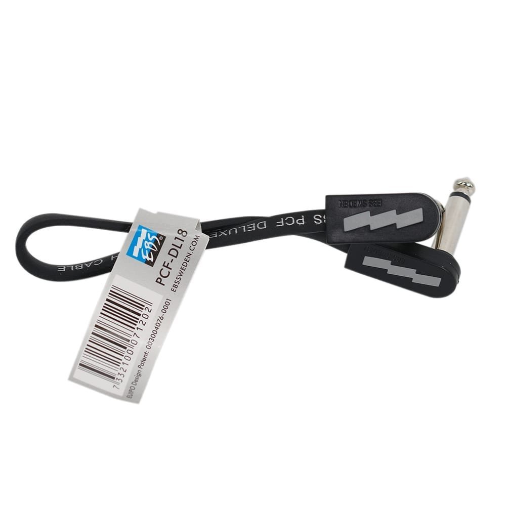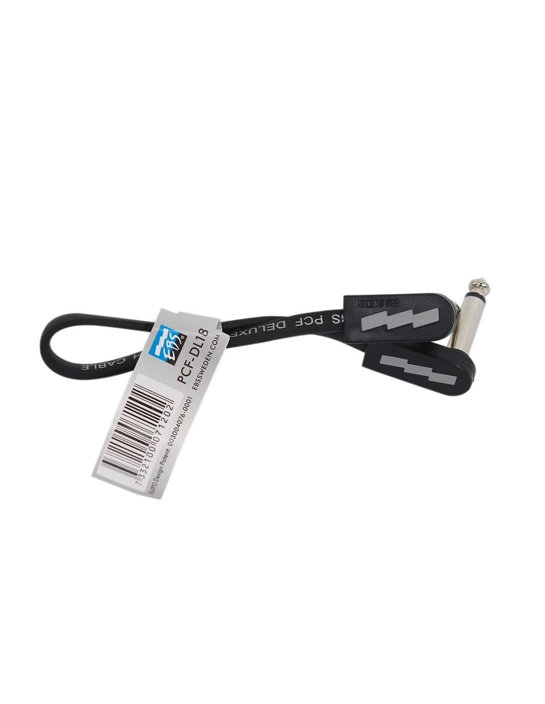 EBS PCF-DL18 PATCH CABLE 90 FLAT 18CM - DELUXE. Flat patch cable with angled 6.3mm TS Jack/Jack terminals with double shielding, with a design designed to save
