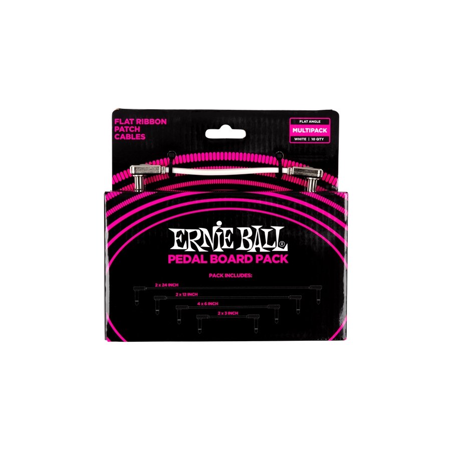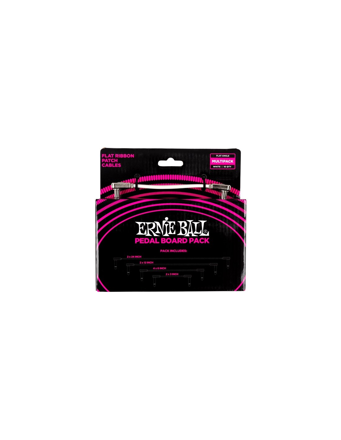 6387 Flat Ribbon Patch Cables White is the Multi-pack containing 10 patch cables from Ernie Ball's Flat Ribbon White series. It is perfect for both guitarists and bass players who want to organize their pedalboard by optimizing all the spaces, without losing quality in the sound chain. All cables inside the package are in a white finish.