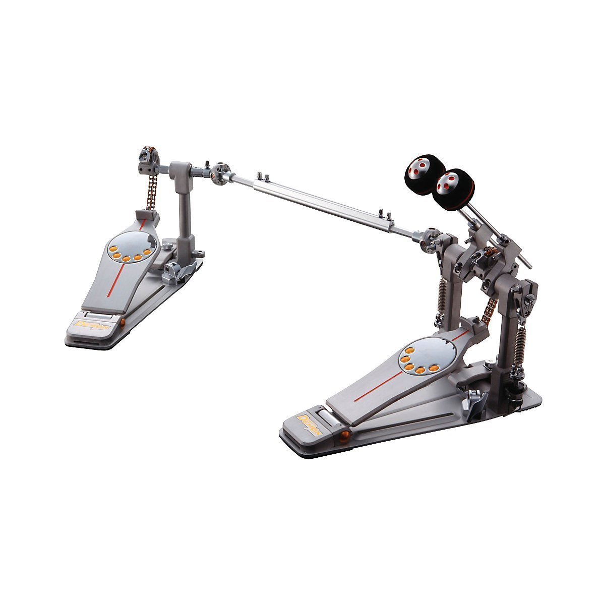 PEARL P-3002C DEMON DRIVE DOUBLE PEDAL. Demon series double bass drum pedal with double and adjustable chain drive, Duo Deck Longboard platform that allows you to quickly switch from a longboard pedal to a shortboard pedal with NinJA bearings for maximum smoothness, Control Core knob, zero latency U-joints. Includes carrying bag.