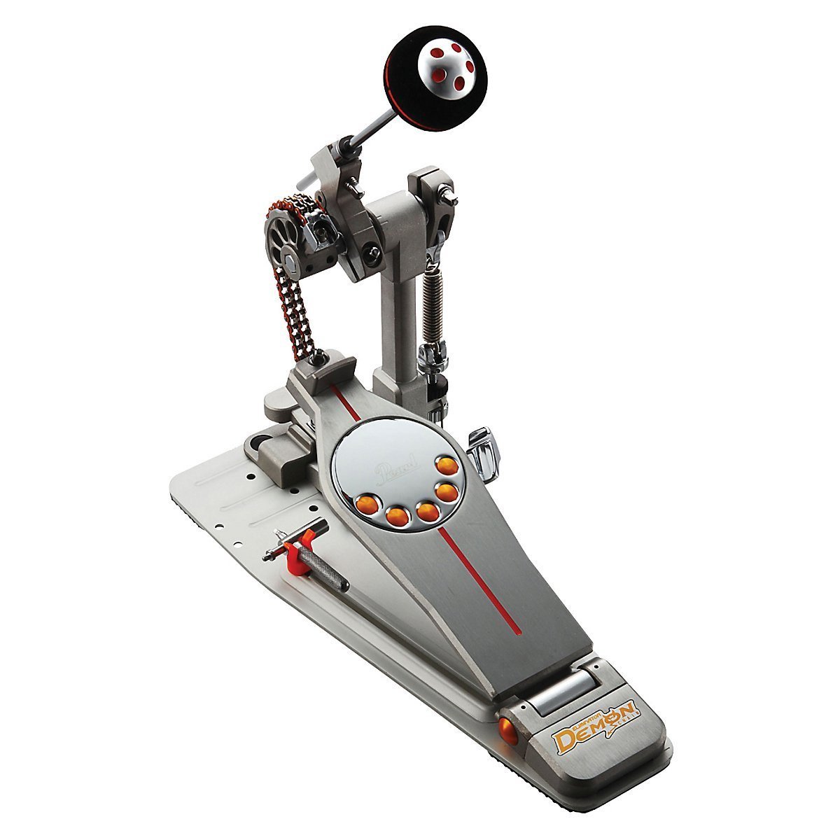 PEARL P-3000C DEMON DRIVE PEDAL. Demon series bass drum pedal with double and adjustable chain transmission, Duo Deck Longboard platform that allows you to quickly switch from a longboard pedal to a shortboard pedal with NinJA bearings for maximum smoothness, Control Core knob, zero latency U-joints, possibility of converting into a double pedal through an expansion kit (not included). Includes carrying bag.