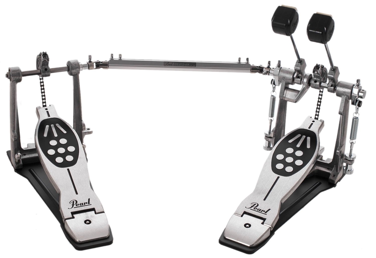 PEARL P-922 DOUBLE PEDAL BASS DRUM 922 series double bass drum pedal with single belt drive, Powershifter adjustment system, Uni-Lock beater angle adjustment, smooth footrests with grip, latency-free adjustable cross joint and DuoBeater knobs