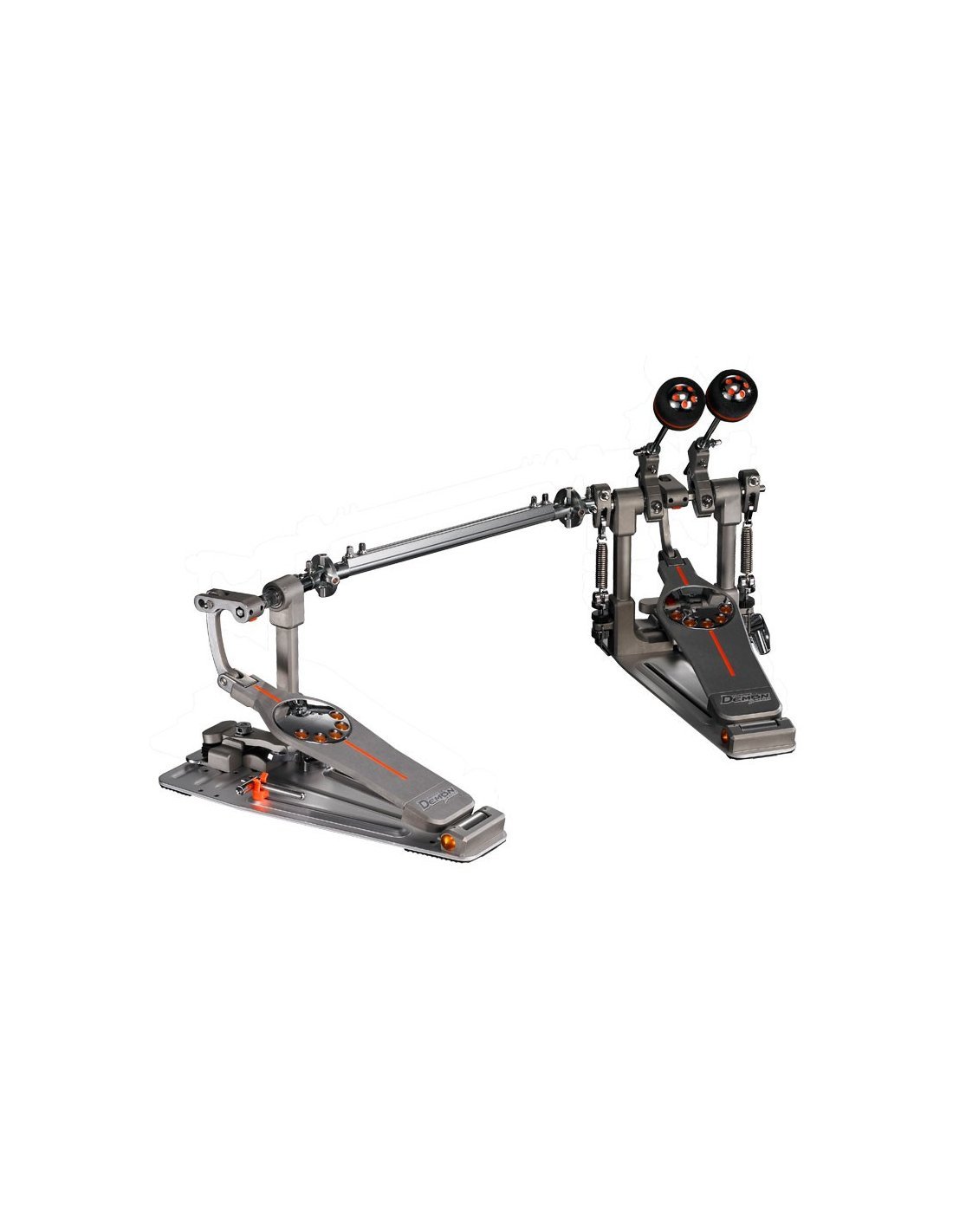 PEARL P-3002D DEMON DRIVE DOUBLE PEDAL. Demon series double pedal for adjustable direct drive bass drum, Duo Deck Longboard platform that allows you to quickly switch from a longboard pedal to a shortboard pedal with NinJA bearings for maximum smoothness, Control Core knob, zero latency U-joints, possibility of converting into a double pedal through an expansion kit (not included). Includes carrying bag