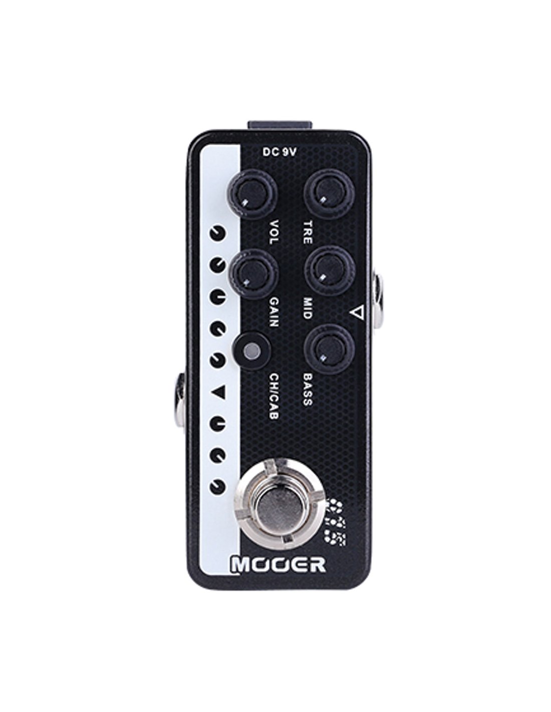 Mooer 015 Brown Sound Guitar Pedal. The Mooer 015 Brown Sound is a guitar pedal preamp modeled on the Peavey 5150, true bypass amplifier. It is equipped with two completely independent channels, integrated speaker simulation function that can be activated or deactivated, two modes of operation/channel selection, Volume, Gain, Treble, Middle, Bass controls
