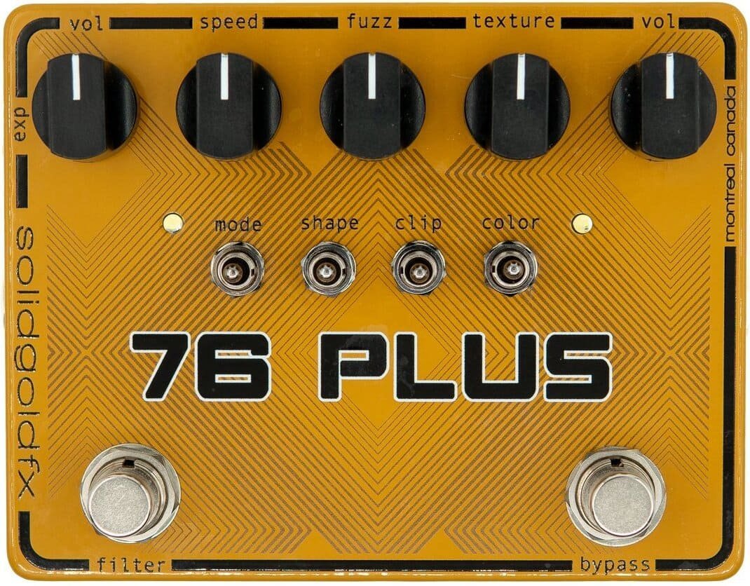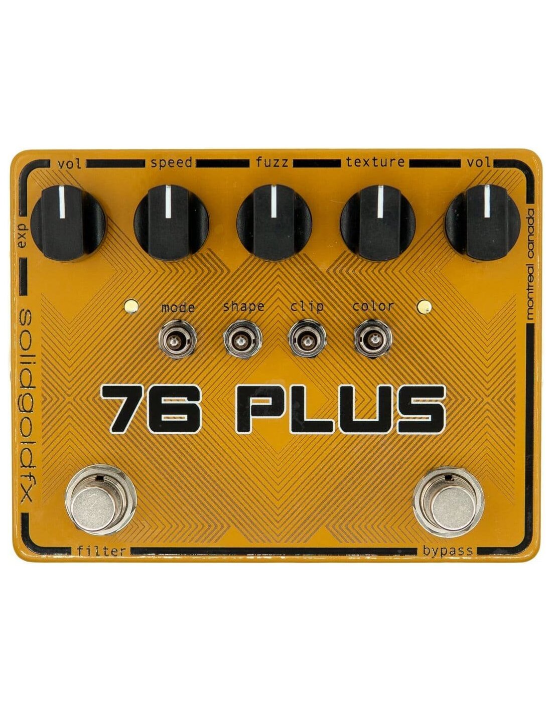 Solid Gold FX 76 Plus is a Fuzz pedal for electric guitar or bass inspired by the Univox Super Fuzz. It is enriched with an Octave-Up with a Wah style filter with different modes and waveforms