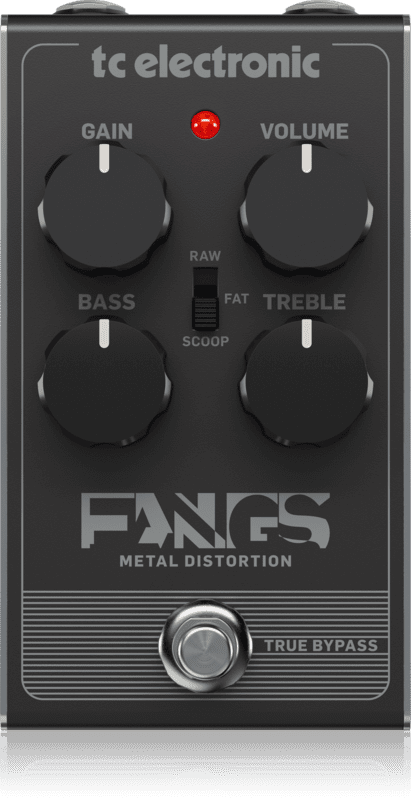 TC Electronic Fangs Metal Distortion is a distortion pedal with true bypass operation, equalization controls for low and high frequencies and a switch for digging or pushing mids. It is a pedal suitable for lovers of distorted high-gain sounds