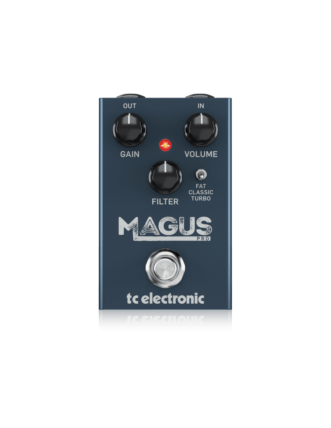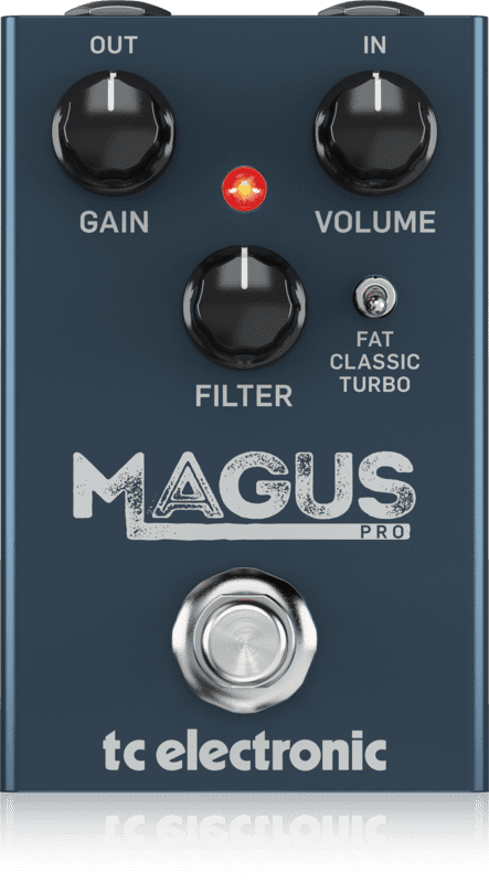 TC ELECTRONIC MAGUS PRO. Analog distortor pedal for guitar. Technical features include Gain, Volume and Filter controls to control the effect level, 3-way switch (Fat, Classic, Turbo) for 3 different clipping modes. It works with a 9v battery or power adapter (not included). True Bypass.