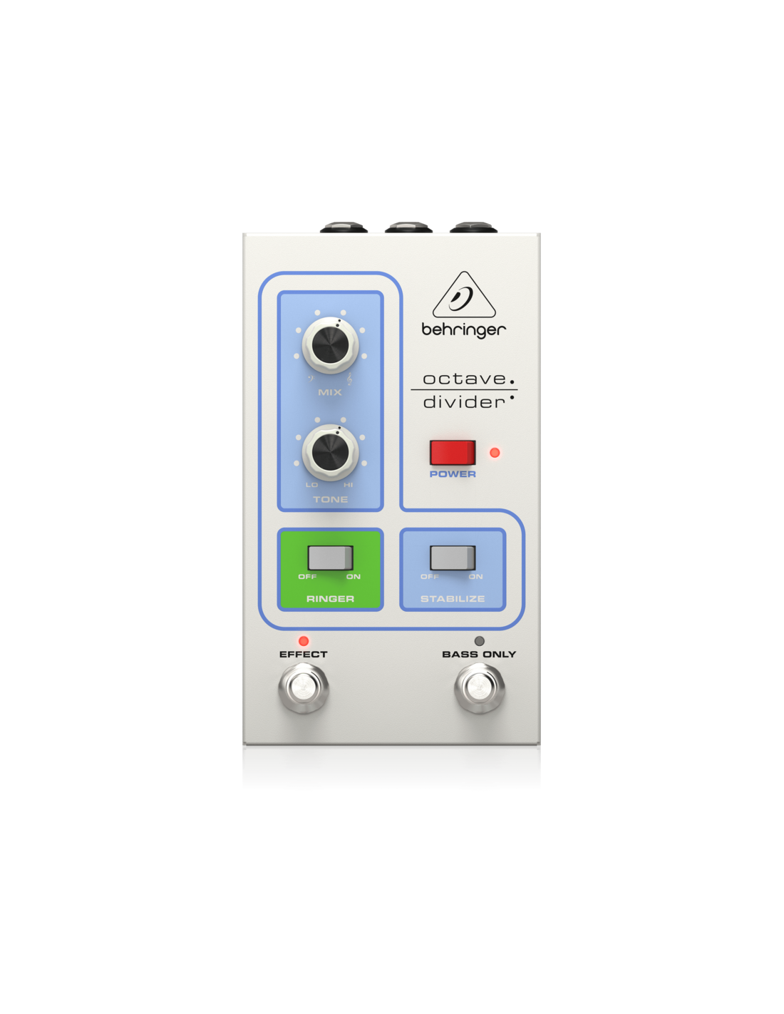 BEHRINGER OCTAVE DIVIDER is an Octaver pedal for guitar, bass and keyboards. It faithfully reproduces the Octave Divider pedals from the 70s. The technical features include a very decisive sub-octave effect, controllable and mixable with a dry signal through the Tone and Mix controls, a switch Ringer function to emphasize harmonics in higher sounds, a Stabilize a switch function that allows better note tracking and definition, Bass only button to exclude the Dry signal in favor of the sub-octave effect. Equipped with a power supply