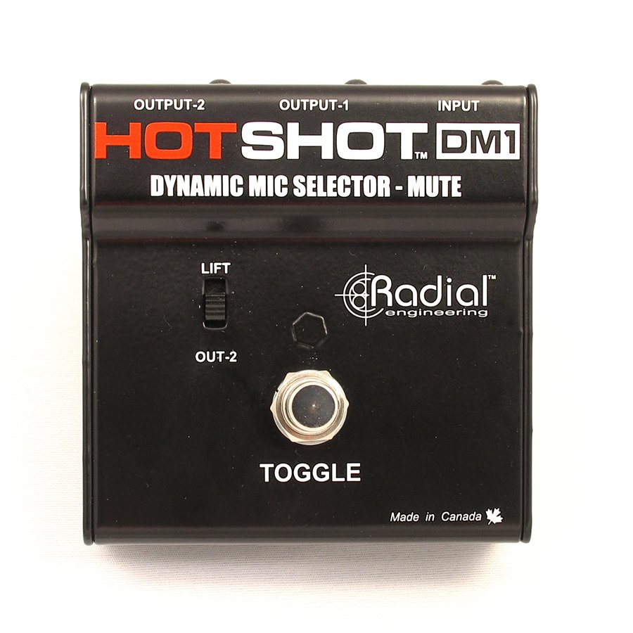 Pedal switcher that, if squeezed, mutes the signal that goes to the room's PA system and directs it to the in-ears monitors or to the interior. It does not require a power supply. For mic. Dynamic.
