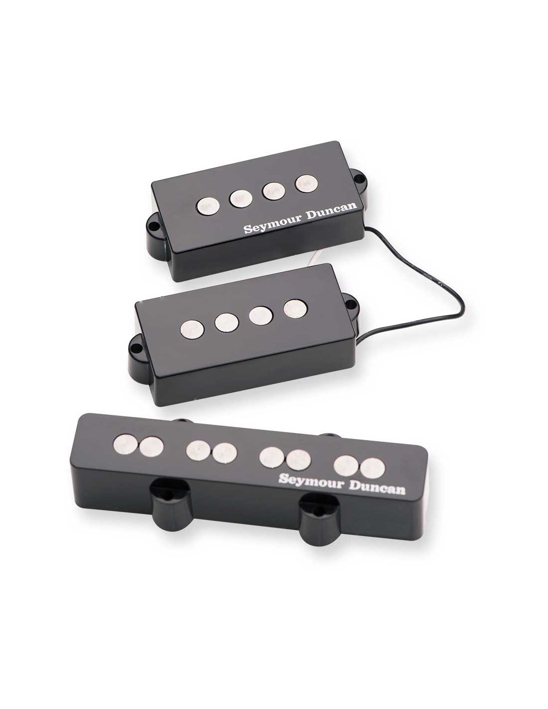 11402-57 Massive attitude from the Jazz bass pickup on the bridge along with the full and punchy P-bass fat tone. Together, these 'Quarter Pound' bass pickups provide a full sonorous voice with a high-performance 'punch'. Every stroke of the string provides a low-end bite with lots of sustain. They provided their unique punch for the bassists of Blink 182, Alien Ant Farm, Rise Against, Bad Religion and Smashing Pumpkins. Players who have a P-J bass will now be able to get the rich sound of Quarter Pound pickups with our 4-string P-J bass set. The Quarter Pound for Jazz Bass was designed to offer a warm production, a great attack and a massive attitude. The quarter-inch diameter poles and the intense coil wrap provide a complete and uniform response, with great sustain and sound richness. The P-bass Quarter Pound pickup's magnets expand the magnetic field and extend frequency ranges for a fat, full, punchy sound with exceptional mid-range presence and maximum power. While often used for heavy rock tones, this pickup set offers extraordinary tonal versatility, making it a favorite across the board in live and studio environments. These pickups shine in classic rock, hard rock, punk, grunge and metal applications. For added versatility, a 2- or 3-band tone circuit can be added. Each pickup is hand-built in Santa Barbara, California.