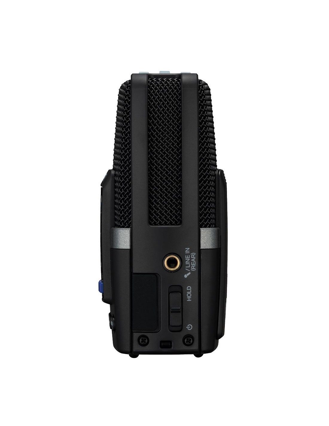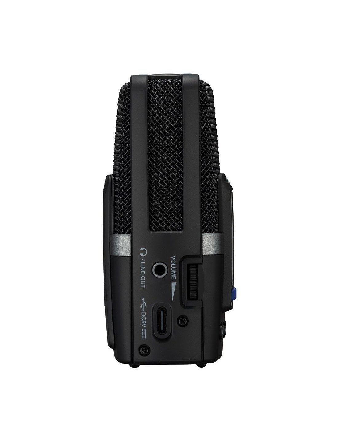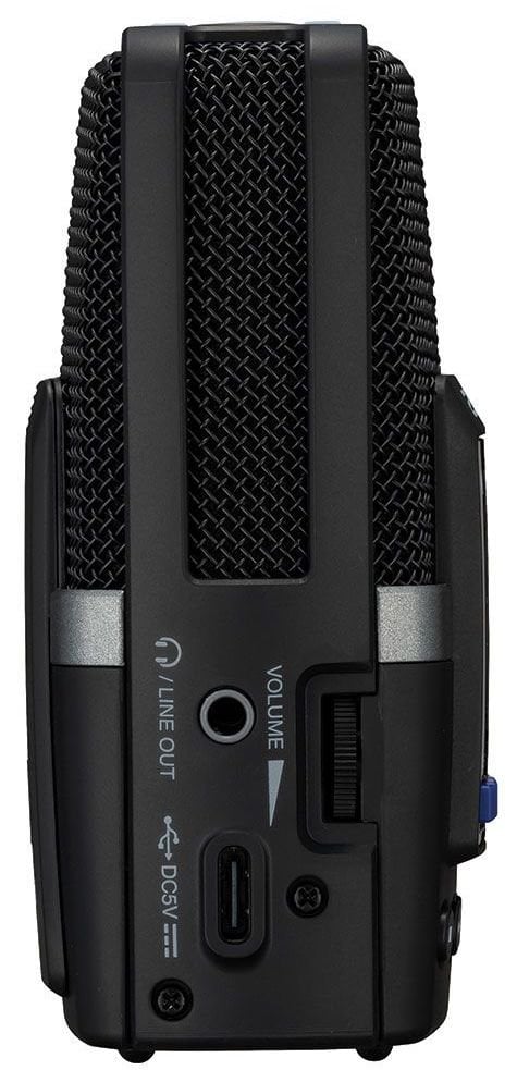 Registratore digitale a 4 tracce (2 stereo) - 2 capsule unidirezionali (anteriore/posteriore) e una capsula bidirezionale (lati) - Registrazione: Mono, Stereo 90°, Stereo 120°, RAW - Ingresso Mic/Line in laterale su mini-jack Alimentazione PiP da 3,5 mm con supporto per microfono Lavallier - Registrazione simultanea ingresso microfono/linea con stereo anteriore - Formati di registrazione: WAV a virgola mobile a 32 bit, 44,1/48/96kHz - Registrazione su scheda microSDHC/microSDXC fino a 1 TB - 1,3 '' Schermo LCD che offre un'interfaccia in francese - Porta per adattatore Bluetooth BTA-1 (opzionale) che offre controllo remoto tramite smartphone iOs e sincronizzazione UltraSync Blue - Porta USB Type-C di tipo alto Conforme alla classe Speed 2.0, compatibile con Mac, PC, Android e iOs - Funzioni USB: lettore di schede, interfaccia audio 4 ingressi/2 uscite in 24 o 32 bit a 96 kHz (solo interfaccia audio, 48 KHz se registrazione interna simultanea) - Uscita cuffie su mini-jack stereo da 3,5 mm - 250 mW Altoparlante monitor mono da /8Ω - Funziona con 2 batterie AA (non incluse, autonomia fino a 20 a seconda dell'uso) o alimentatore AD-17 opzionale - Peso: 170 g - Dimensioni (mm): 60 (L) x 44 (P) x 97 (H)