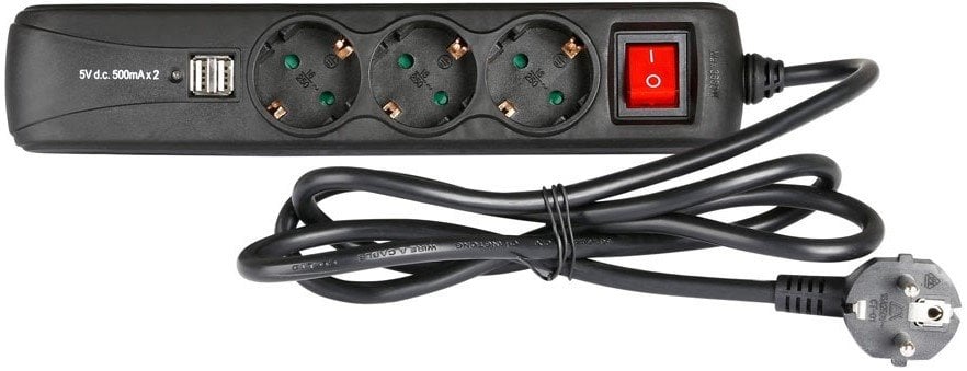 ADAM HALL 8747 S 3 USB CIABATTA 3 PRESE CON INTERRUTTORE + 2 PRESE USB