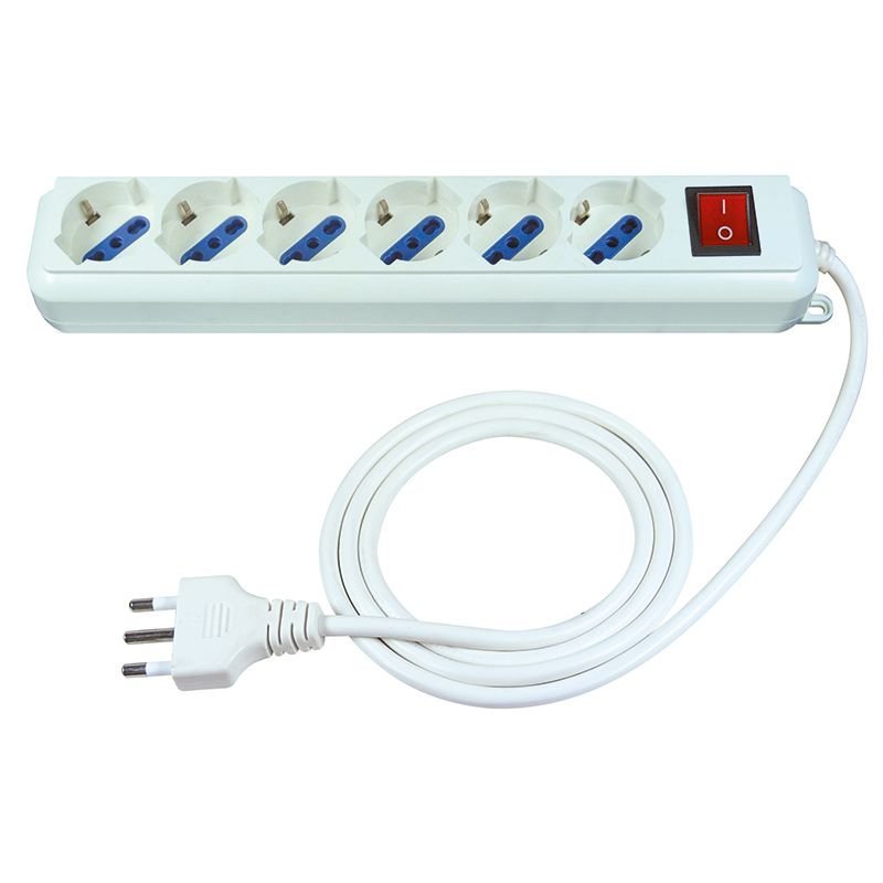 ELCART 6-SEATER SLIPPER WITH INTERR. Power strip with light switch, 6 bipass 10/16A + schuko oriented sockets and three-pole