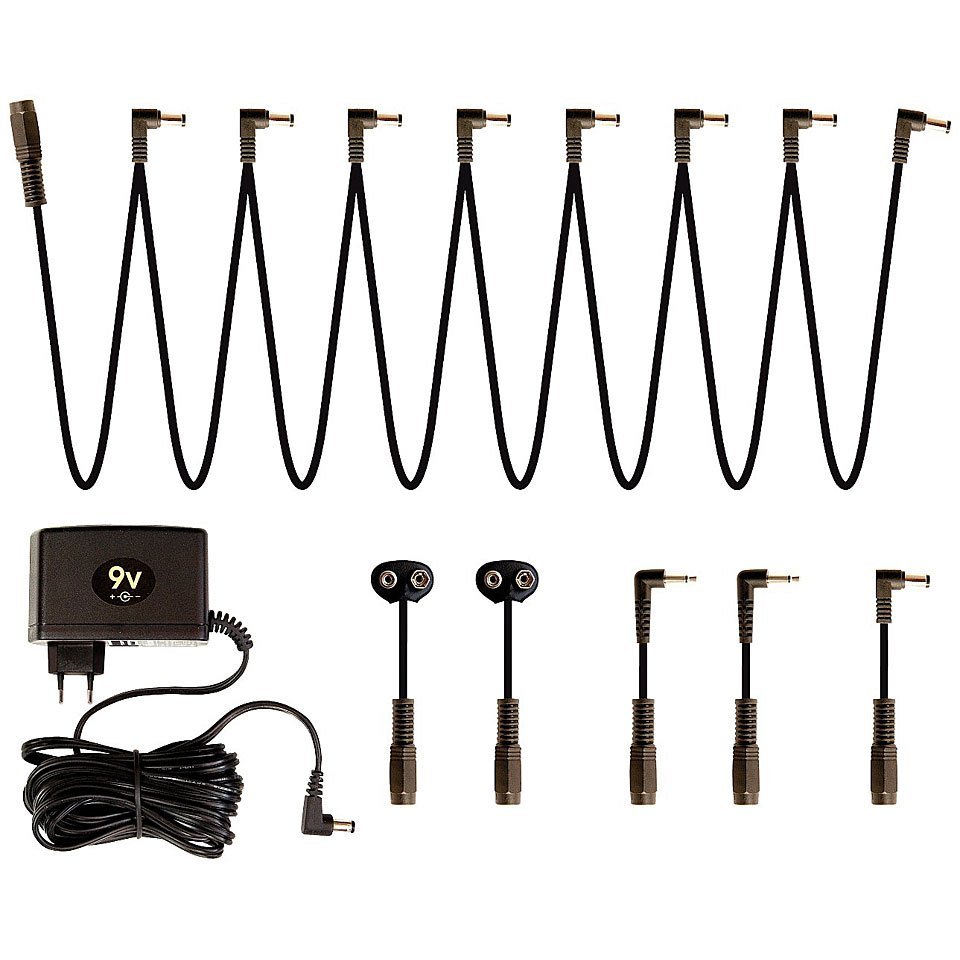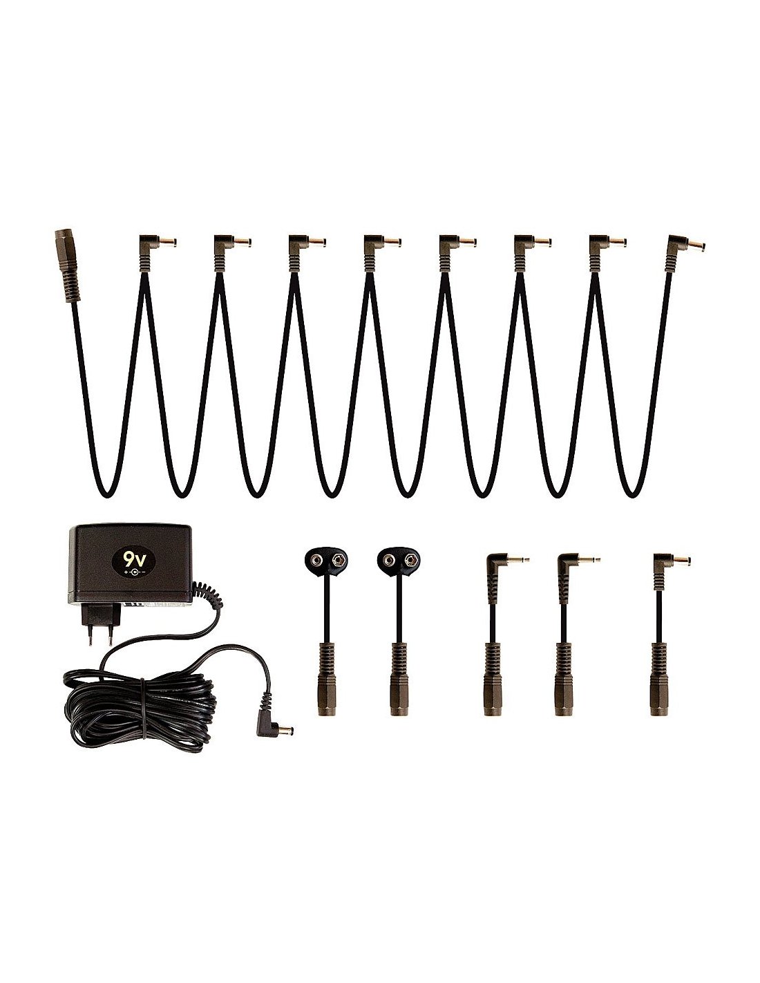 Truetone 1-Spot Combo Pack is a power supply for effects pedals with an 8-plug cable. It can handle up to twenty guitar pedals (1700mA max). Included are: Cable with 8 connectors, 2 battery clip converters, 3 converters for Line 6 modeling pedals