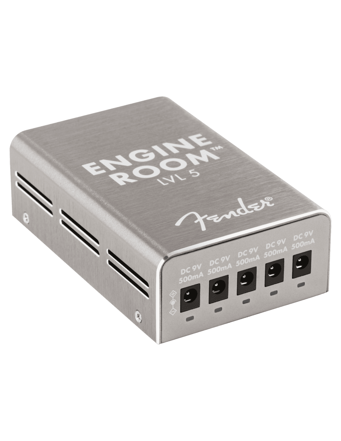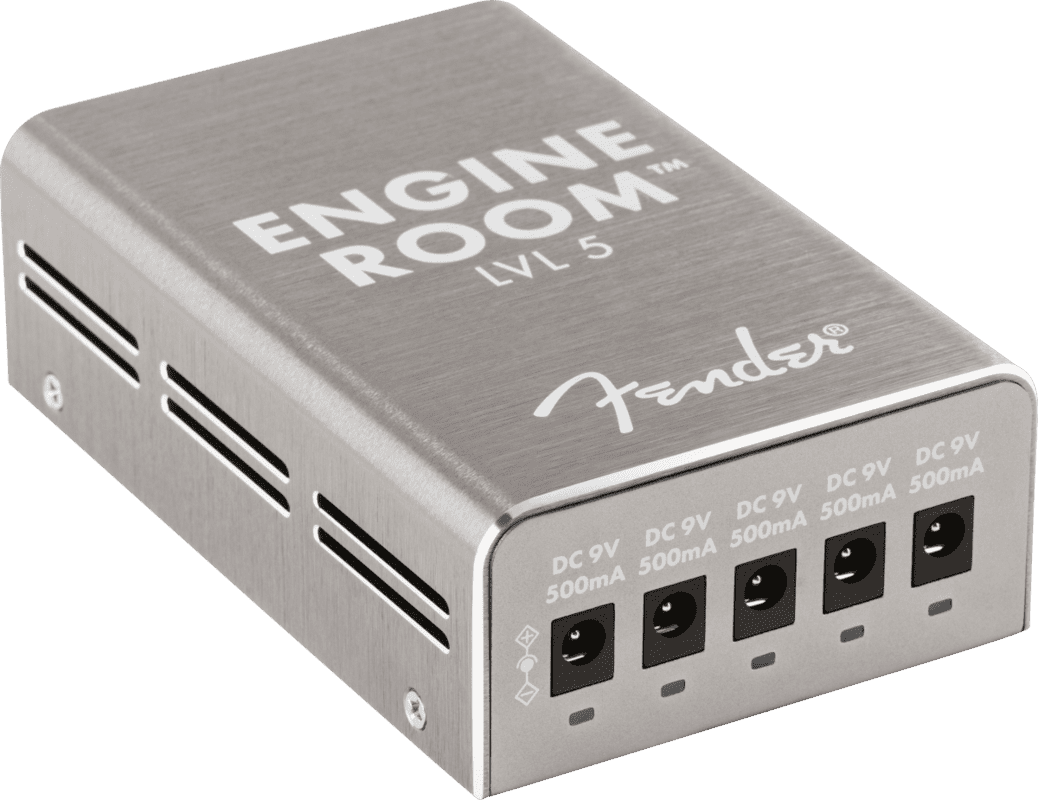 FENDER LVL5 ENGINE ROOM is a multi-socket power supply for pedalboards, with 5 isolated power outlets from 9V DC to 500mA.