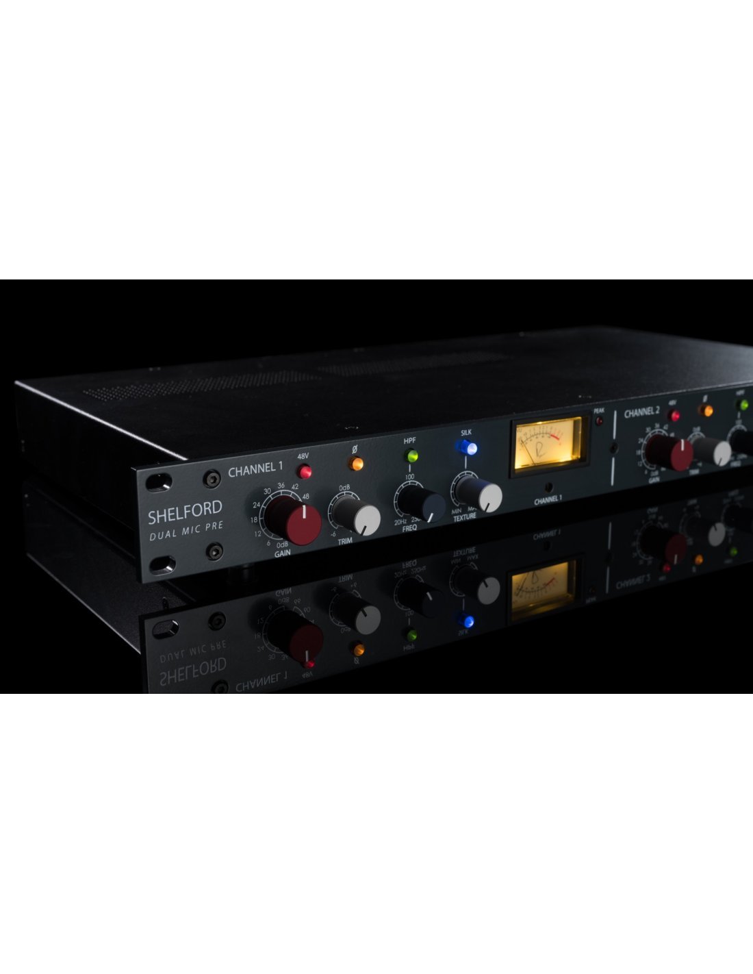 Dual Shelford Mic Preamp 5025 Dual Shelford Mic Preamplifier Rupert Neve Design's best-seller, the Shelford Channel, is the definitive evolution of the original electronics of the classic 1073, 1064 and 2254. With great demand, Rupert Neve Designs offers the Dual Shelford Mic Pre: a two-channel, limited-edition version of the flagship preamplifier that has become the indispensable tool for countless sound engineers, producers and musicians. The Dual Shelford offers the sonic excellence of two Rupert Neve Designs Shelford microphone preamps in a single rack, with internal power supply; in a nutshell, these are two channels of the best microphone preamp in the world.This special production will be limited to only 300 pieces worldwide.The input transformerLike the original Rupert Neve designs, the Dual Shelford Pre uses a custom input transformer that provides the first 15 dB of gain. This custom transformer, together with its careful integration with the surrounding Class A circuitry, is essential for the amplifier's sound performance. His sound can be heard on thousands of historic recordings. While most of the harmonic richness of Rupert's designs is the result of the output transformer and surrounding Class A amplifiers, this input transformer provides unique sounds. The technical reasons are mainly the result of the reactive impedance characteristic of the input transformer and how this interacts with the connected microphone, with a fine non-linear harmonic improvement in the bass and an unmistakable softness in the high frequencies. While the input stage for Shelford Channel and Dual Shelford Pre was being created, the goal was not simply to reproduce the classic projects, but to improve them by combining the unmistakable sound of vintage technology with the broadband frequency response, with always excellent amplifier performance with any gain setting and extremely low background noise. To achieve this goal, customized transformer designs have been optimized and full shielding of the input transformer has been implemented in MuMetal. The resulting preamplifier is flat from below 10Hz to above 60kHz, and thus the purest and most versatile sound possible is obtained. What is Silk? The Dual Shelford Mic Pre's unique Silk & Texture circuit allows you to adjust the amount (and type) of harmonic content in the output stage. This means that the sound can vary from transparent settings to others that produce almost 10 times the amount of color of vintage Neve modules. This happens in two unique ways. Whatever sound you're looking for, Silk can help you achieve it. When you apply SILK RED, you are improving the harmonic content generated by the highs and mid-highs of your source. This adds brilliance to the upper end of the band, and is often ideal for sources such as vocals, snare, strings, piano and many other acoustic instruments. With SILK BLUE, you are improving the harmonics generated by the bass and mid-bass of your source. This tends to “reinforce” the signal, making it an excellent choice for drums, bass, heavy electric guitars, male vocals and synthesizers. The dual output level transformers complete the Silk circuit with custom-designed output transformers, which use the particular dual output topology of Rupert Neve Designs. These offer both Main (+26 dBu) and -6dB (+20 dBu) outputs, allowing the sound engineer to bring the preamps to the classic transformer saturation without clipping the converters and other subsequent devices in the audio chain. The main outputs are designed to capture a more pristine sound at high levels, avoiding any non-linear coloring of the output stage. The -6dB outputs allow high levels of gain on the Shelford without clipping the most professional interfaces. On drums, vocals, guitars and other instruments, these outputs allow you to easily reach the “sweetspot” of the transformer's non-linear harmonic content, resulting in a performance recorded in a way that other preamps cannot match.FeaturesThe definitive evolution of Rupert Neve's renowned vintage microphone preamplifier technologyDual output level transformers create a rich harmonic character, without clipping the next device into the Silk Red & Blue mode chain with control Texture to precisely compose the desired amount of “classic” soundShelford offers the essence of classic design combined with ModernAgain versatility in class A up to 72 dB with low background noise, to bring out the best from any source. Suitable power supply worldwide, with double voltage compared to the original modules of the 80 series. Discreet design designed with precision, built to last for decades to come.