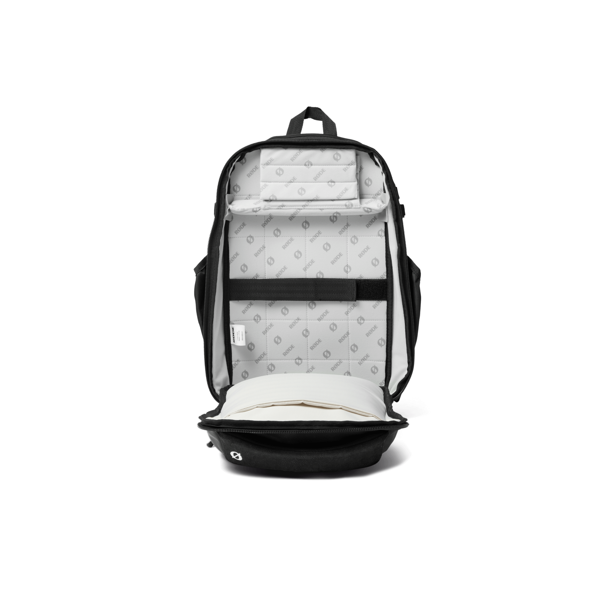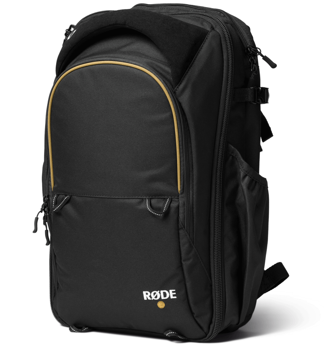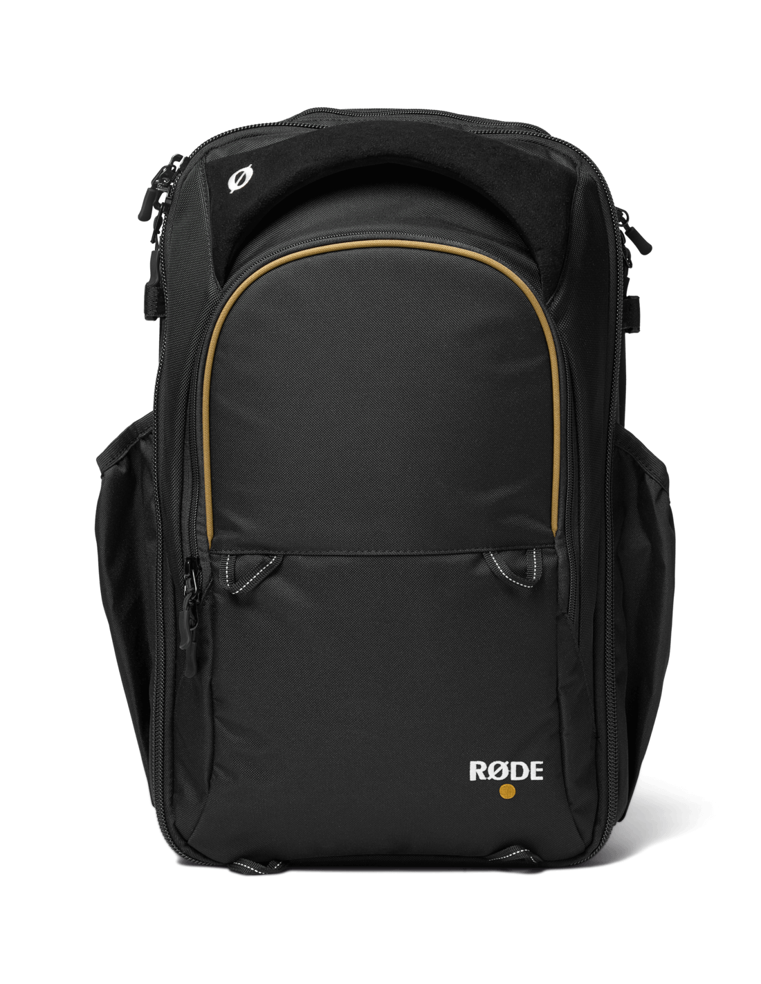 The Rode Back Pack is a backpack designed to carry the RØDECaster Pro or RØDECaster Pro II. It features a padded compartment for laptops up to 16" and compartments for modular equipment, external pockets, ergonomic shoulder straps, back support and sternum strap