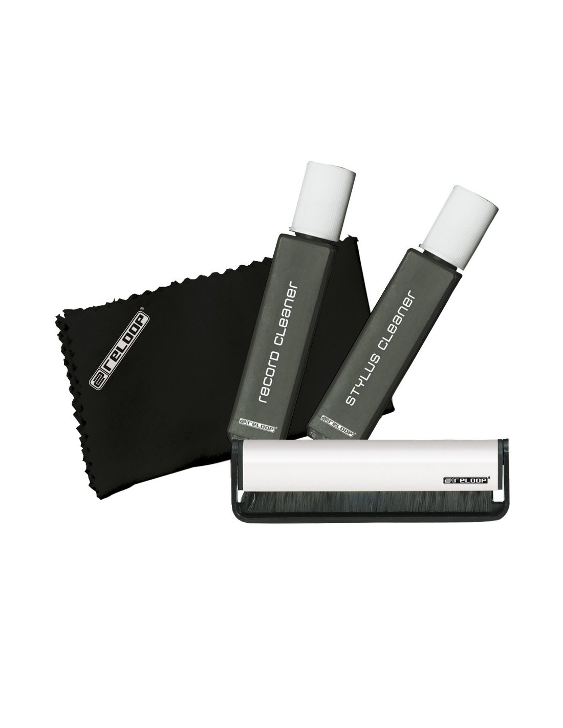 RELOOP PROFESSIONAL DJ CLEANING SET MK2. Kit for cleaning vinyl and tacks, consisting of carbon fiber brush, brush for cleaning pins, antistatic cloth, 20ml of vinyl cleaning liquid, 20ml of liquid for cleaning