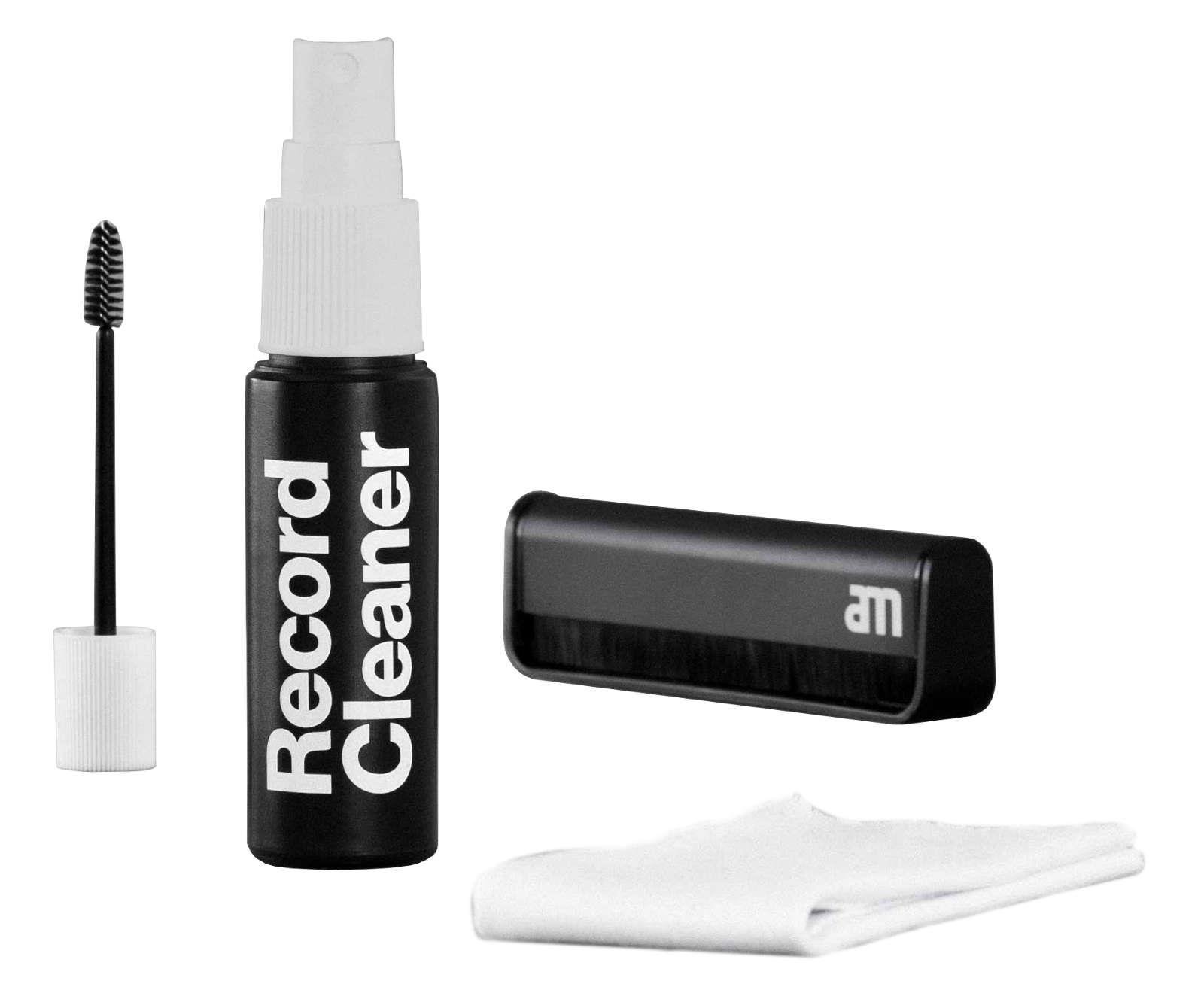 AM CLEAN RECORD CLEANER SET. Cleaning kit for vinyl records. It includes cleaning liquid (45ml), antistatic toothbrush, detergent for cleaning pins, cotton cleaning cloth