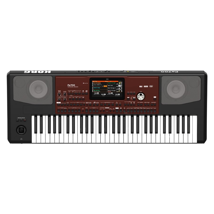 KORG PA700 is a professional arranger keyboard with 61 semi-weighted keys, equipped with a wide range of realistic sound possibilities, thanks to Korg's “Defined Nuance Control” technology. Technical features include fast and intuitive user interface with 7" TFT Touchview Display, Enhanced EDS-X (Enhanced Definition Synthesis-expanded) sound generation system, ROM memory for internal sounds of 256MB of User PCM memory, 2 Assignable Switches, 2 Assignable Knobs, 4-way Joystick for full control of sound articulations (“Defined Nuance Control”), 61-key semi-weighted keyboard with Velocity and Aftertouch, Search function, Dual-Cone 2-way internal amplification system, 370 Factory Styles each with 4 Variations and 4 Fill Ins + Break and 24 User Banks, Style Creator Bot function, multi-effects processor with 2 Insert Effects and 2 Master Effects for accompaniment, 1 Insert Effect and 2 Master Keyboard Sets, Final Limiter and Parametric EQ, 3-voice TC-Helicon Vocal processor with 5 dedicated effects. It also features dual MP3/MIDI Player/Recorder with X-Fader and Vocal Remover, Detect Chord function, 512 User Sound Locations, 256 User Drum Kit Locations, MIDI connection via USB HOST port and microSD card slot. Includes lectern, manual and power cable