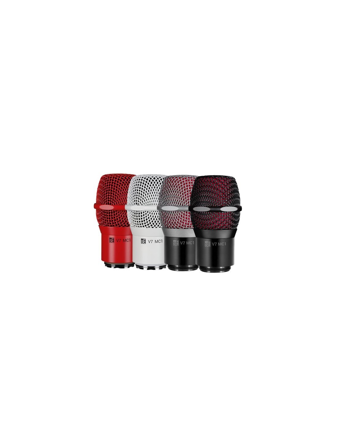 Condenser capsule for Shure Radiomicrophones (except BLX and GLX-D series) - Red Condenser capsule for Shure Radiomicrophones (except BLX and GLX-D series) Red version of the V7 MC1 The V7 MC1 - powerful and massive sound, without the need for cablesWireless version of the dynamic super-cardioid for V7 voice, specifically designed for Shure transmitters.Innovative aluminum coilThe custom DMC7 dynamic capsule present in the V7 MC1 has been developed for a fresh and open sound, capable of to capture the voice as naturally as possible. The sophisticated super-cardioid capsule helps to isolate the voice from other instruments, ensuring a large amount of gain before triggers. Neodymium magnets, accurate production and great attention to detail are factors that ensure superior sound quality.All-metal grillThe V7 MC1 grill is completely made of metal. It does not even contain a plastic part! The high-quality chassis, with its long-lasting zinc alloy, is designed to subject the product to years of stress on the stages, and the steel mesh grille is dent-proof and corrosion-proof. When placed somewhere, the beveled edge around the grille also prevents accidental rolling of the microphone. A measure that is as simple as it is effective. Anti-internal windThe internal anti-wind is able to effectively reduce wind noises and occlusive vocals. In the box there is also a black windscreen, in case you don't like the red color or if you don't consider it suitable for all situations. Integrated patented shock mountThe innovative anti-shock of the V7 MC1 effectively decouples the capsule so as to avoid mechanical vibrations, reducing handling noise compared to other capsules in this range. This means that singers will be free to move around the stage without fear of rumbling, mechanical noise or anything that could interfere with the vocal.Gold-plated contactsThe V7 MC uses gold-plated contacts, to ensure lossless sound and a reliable connection for years, and years, and years...