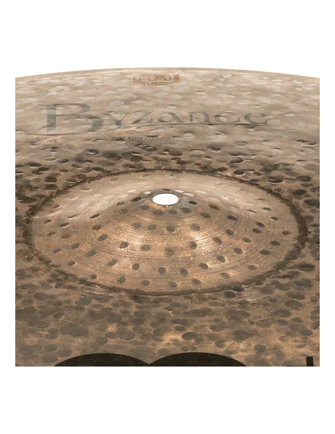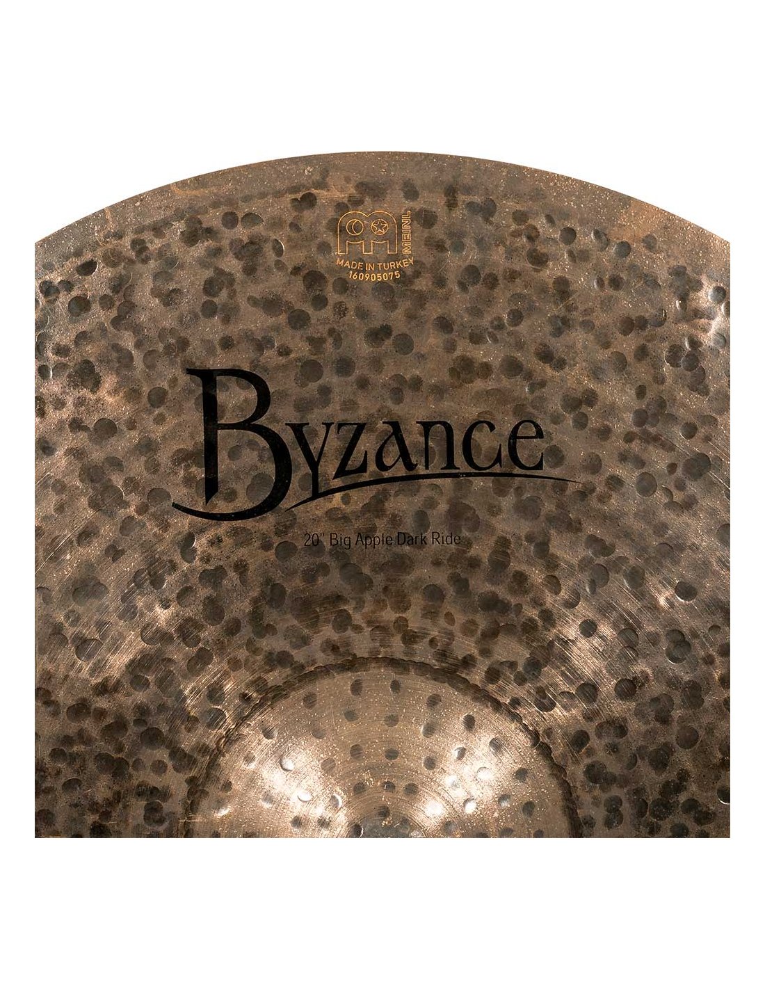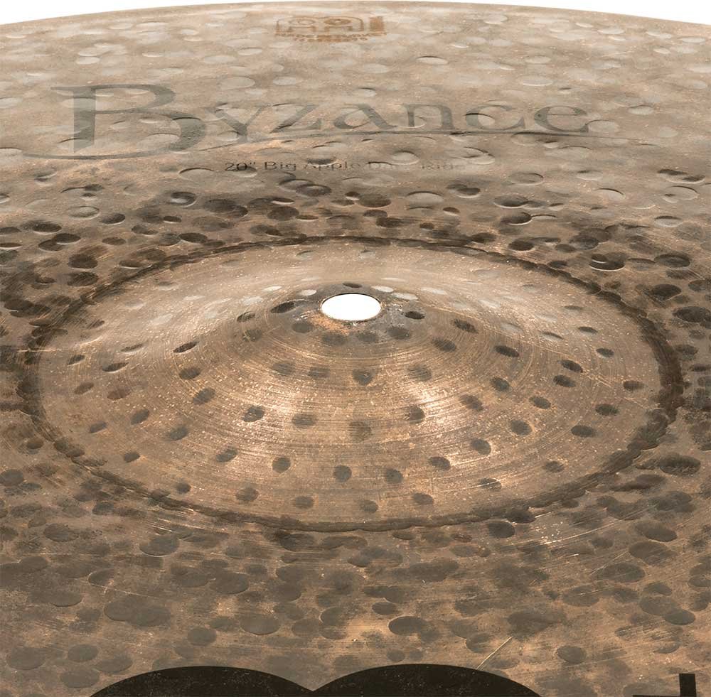 'Ride 20" Big Apple Dark, Byzance Dark Series. The Byzance Dark series plates are handcrafted in our factory in Turkey by specialists and respecting tradition throughout the process. All plates are made with B20 bronze alloy discs. Various techniques are involved in the process, both hammering and turning. The Dark Unturned finish gives each cymbal a defined sound with little sustain. Really nice in the mix.