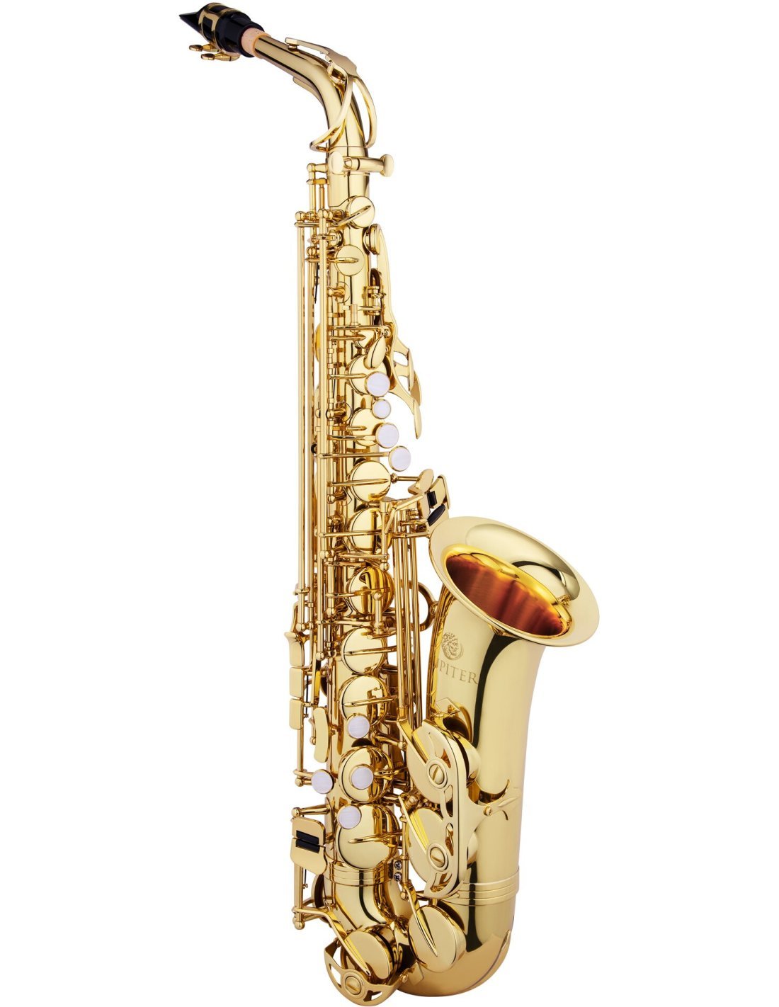 JUPITER is proud to present the successor to the famous JAS500 alto saxophone. JAS510 presents the new JUPITER key structure design introduced with the Colours of Sound 1100 series alto saxophones. The position of the individual keys has been improved, the angles of the keys have been modified and the heights and lengths of the levers have been optimized, so that musicians can benefit from the most advanced ergonomic structure of the keys that facilitates the pleasure of playing and avoids stress and fatigue. Tuning: Eb Neck: gold-plated, brass Body: gold-lacquered, brass Mechanism: gold-lacquered, brass Key of F# alto Key of Do#-Bb Adjustable thumb rest Adjustable bumpers Stainless steel springs Mouthpiece with ligature and cap JUPITER case JKC-AS55UA Accessories