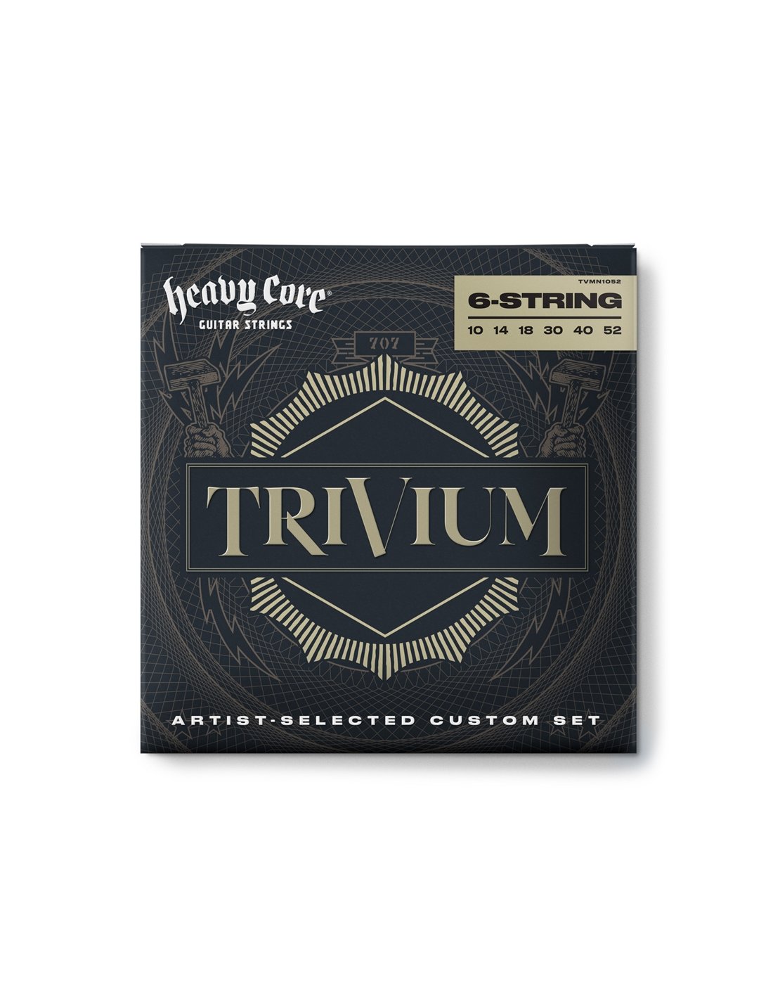 TVMN1052 Trivium Heavy Core is the Dunlop signature 6-string electric guitar set by Trivium, in scale 10-52. This set was designed together with guitarists Matt Heafy and Corey Beaulieu together with the Dunlop String Lab to keep the notes stable in their low tunings, while maintaining