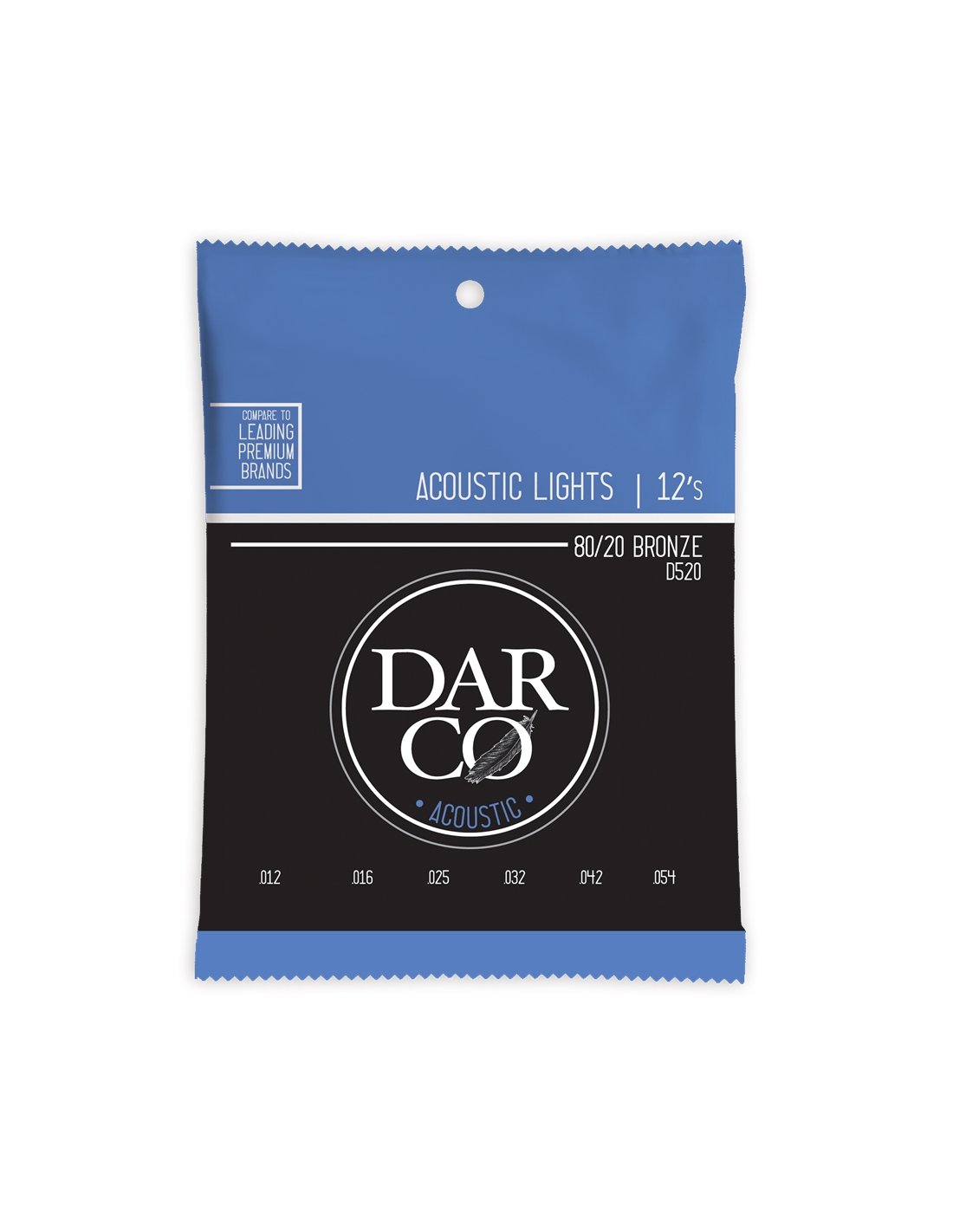 Guitars that are always new and ready thanks to Darco products, which by reducing the strings to what is really necessary and avoiding unnecessary frills that can only increase costs, have developed powerful, clear, balanced and long-lasting strings at an ultra-competitive price. D520 are formed by a tinned steel core and high-quality 80/20 Bronze wrap, Light scaling and diameters: 12-16-25-32-42-54