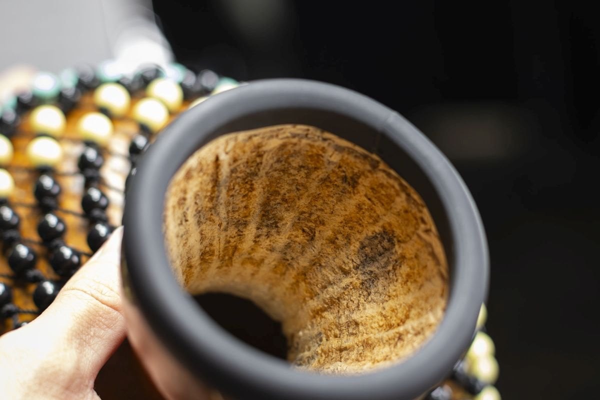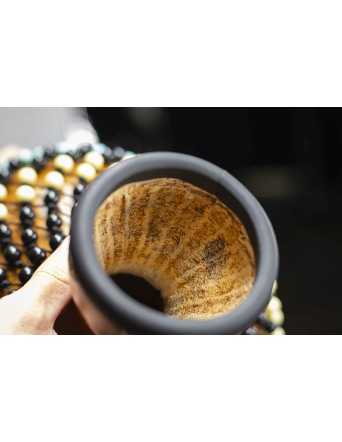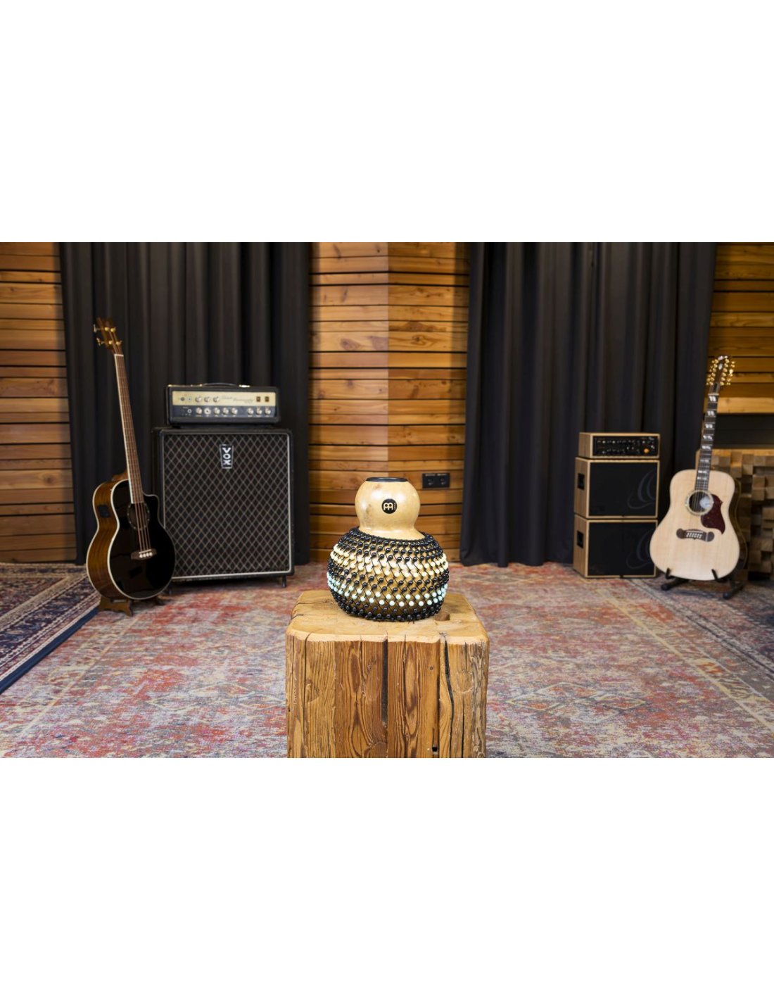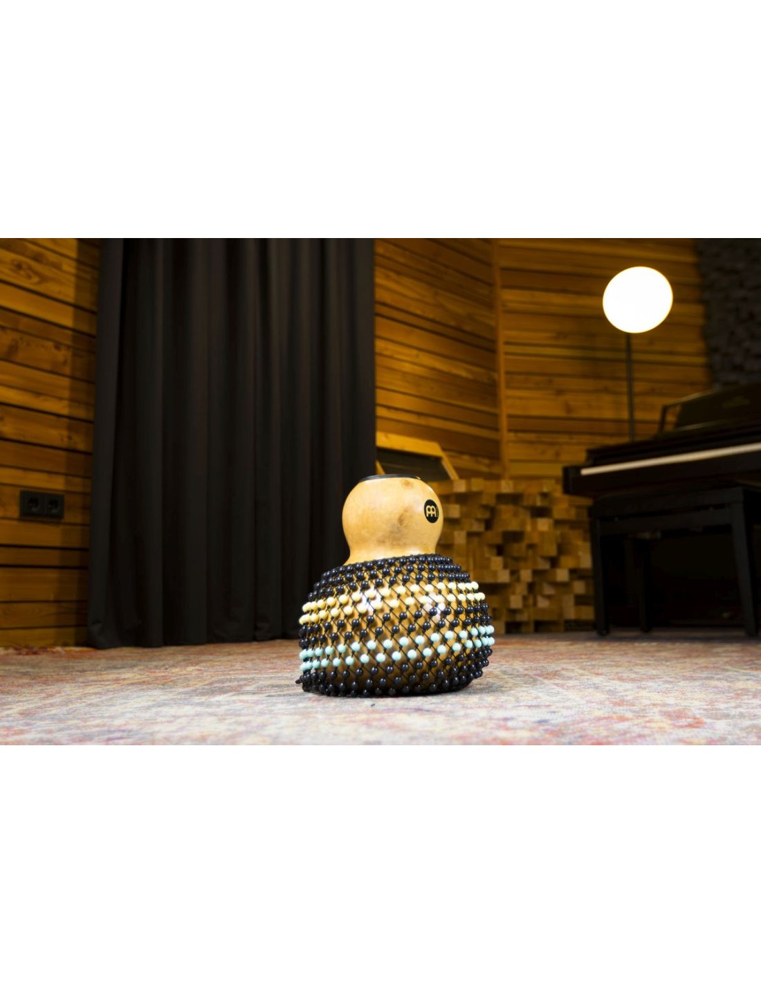 A traditional hollow pumpkin shell offers a bright, sharp tone. The adjustable mesh for a tight or loose response, and the colored synthetic beads produce a classic shekere sound. Features: Natural pumpkin stem Adjustable net for sharp sound Decorative look