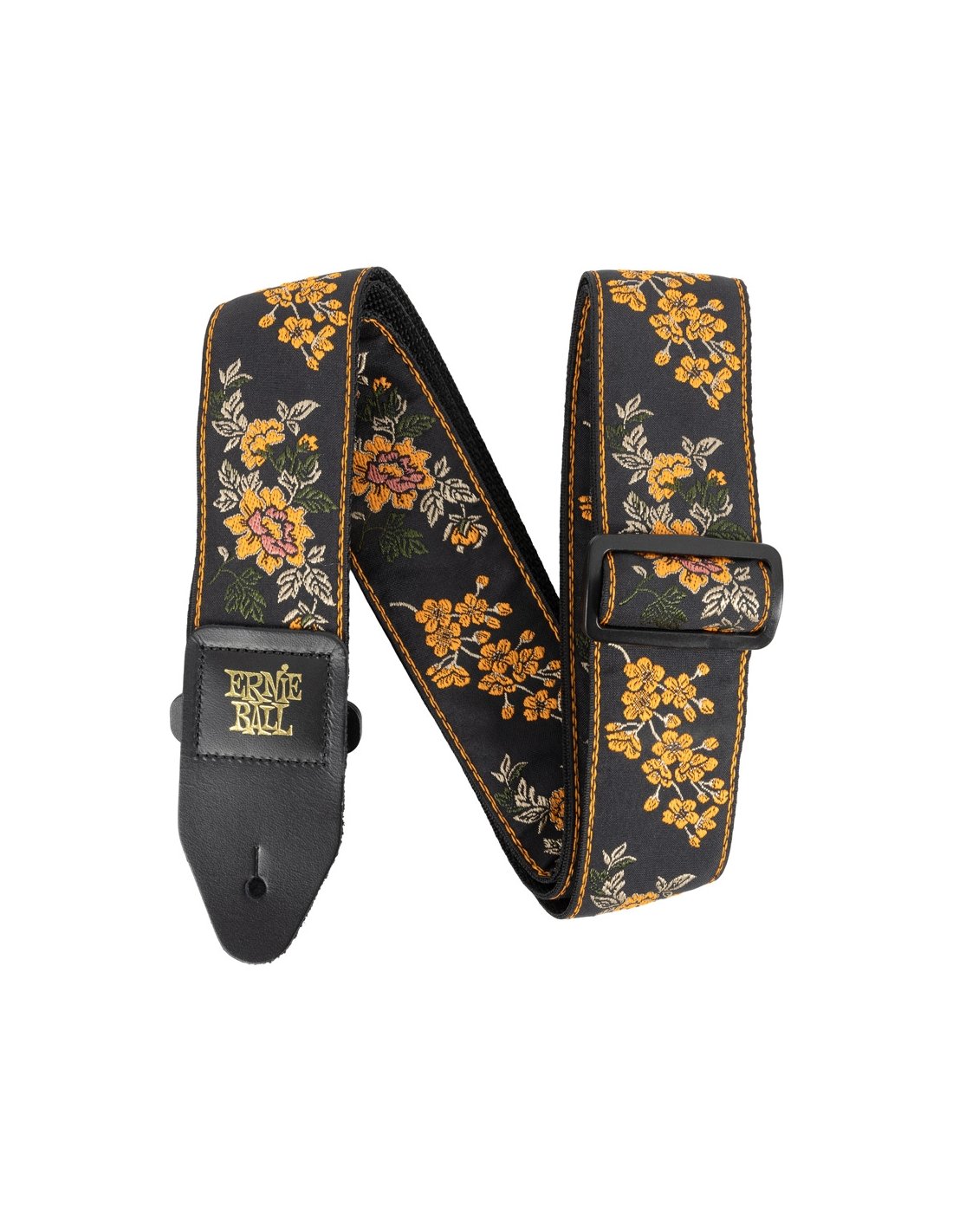 The 5363 is the shoulder strap from Ernie Ball's “Jacquard” series with a Tangerine Blossom pattern, designed for guitarists and bass players. It is made with polypropylene webbing, fine leather ends and can be adjusted from a minimum of 104 cm to a maximum of 183 cm. It is a light, comfortable and resistant shoulder strap, with a floral design that gives color and style combined with your guitar or