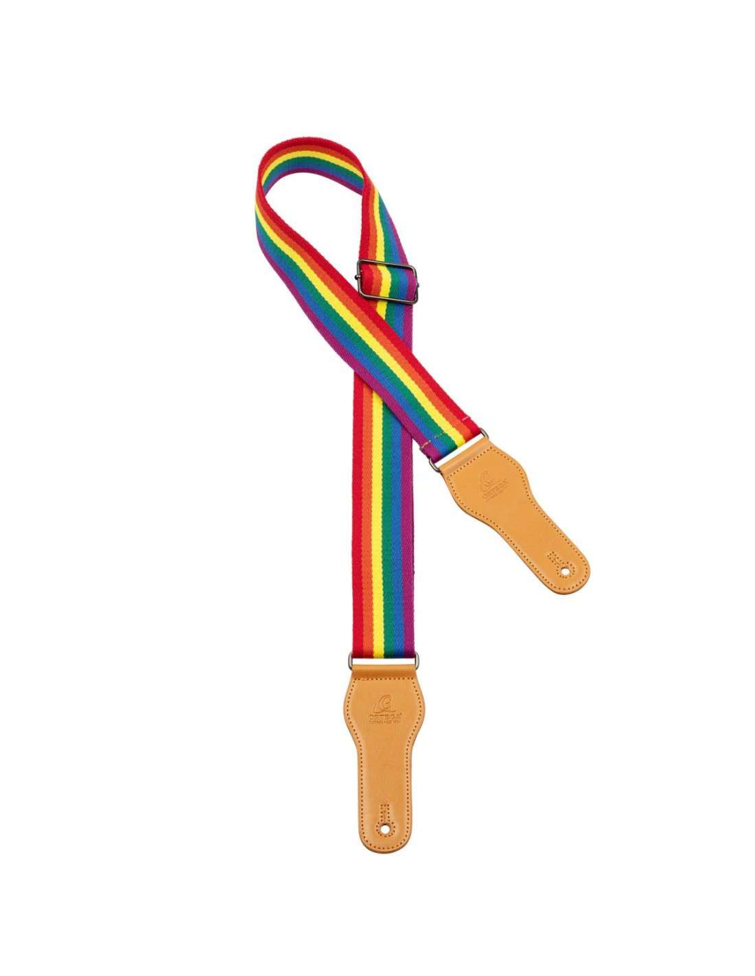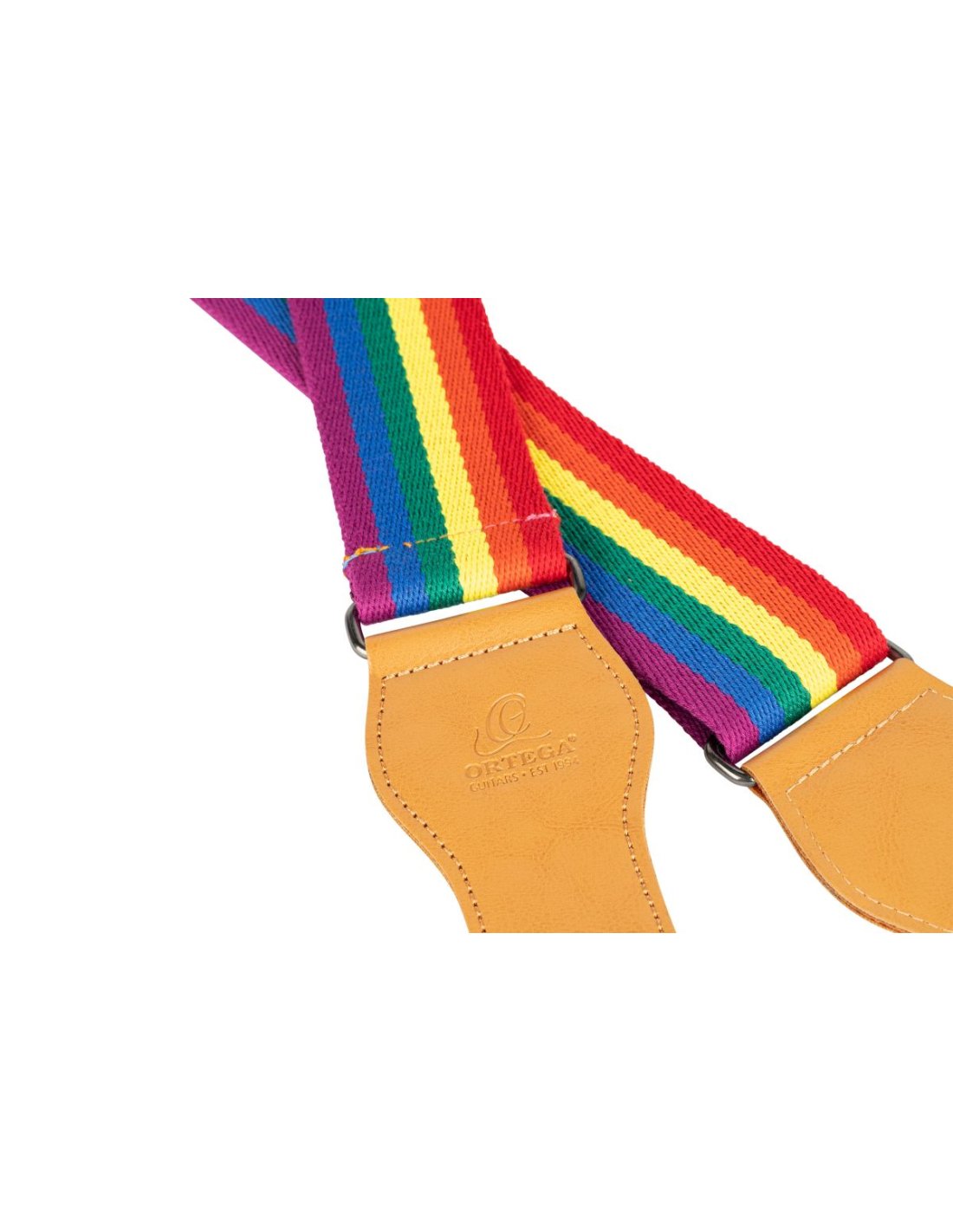 For Guitar. Made of 100% cotton and equipped with sturdy faux leather ends, the Spring series cotton shoulder straps offer high comfort and durability. The elegant look and creative design complete the overall impression. Material: cotton Color: Pride Multi-color Faux leather ends Ortega2023 Engraved logo