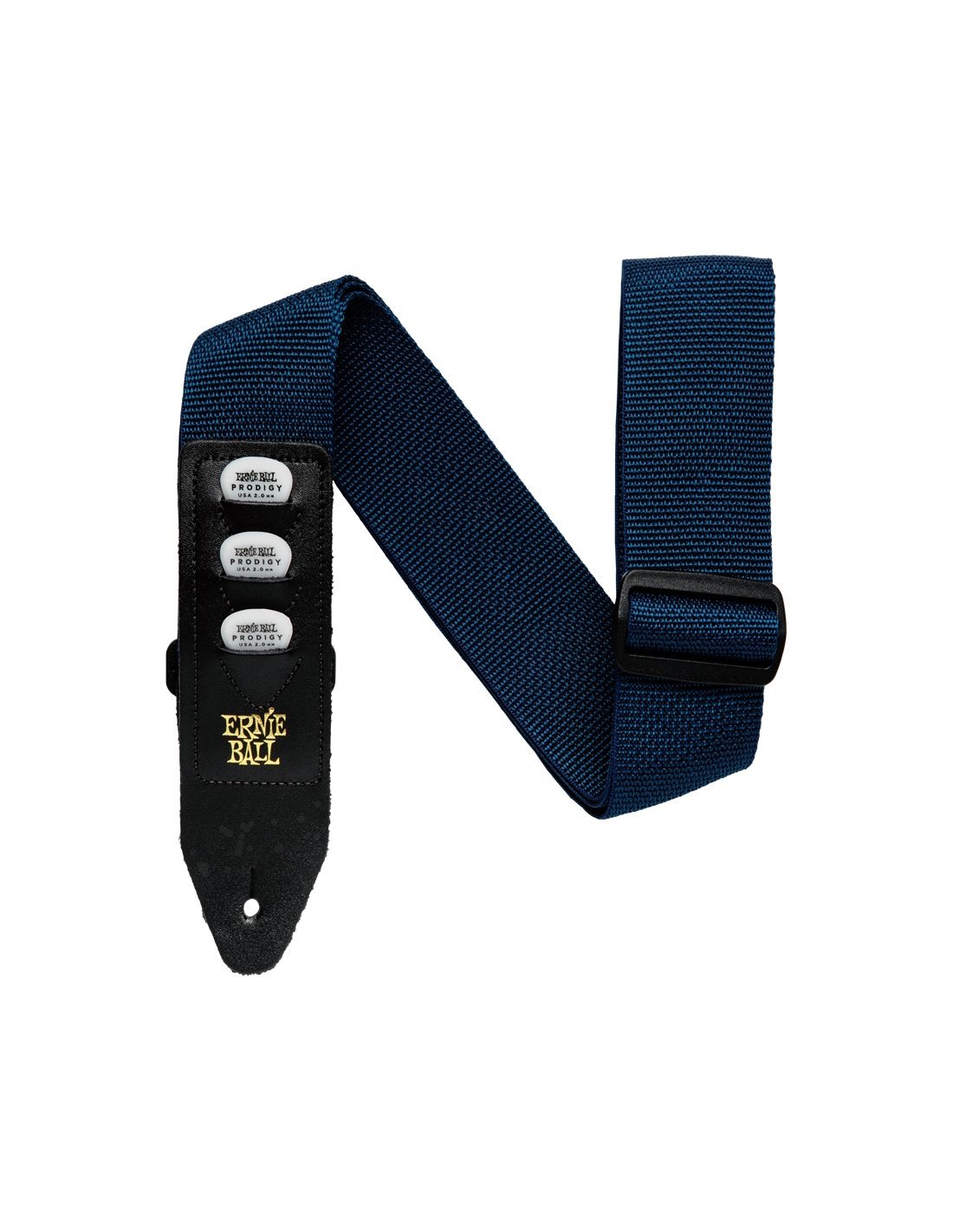4236 Pickholder Strap by Ernie Ball is the strap for guitar and bass in the Navy finish, designed with a leather end that will allow you to place up to three picks housing them on the front of the strap.