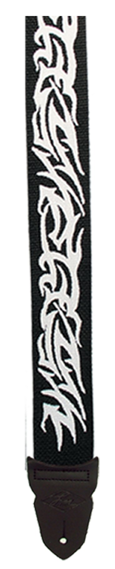 2” guitar strap with leather ends 2” polyester guitar strap with print, leather ends Main FeaturesLength: 60” Width: 2” Material: Polyester, Leather TerminalsPattern: Tattoo