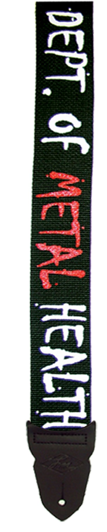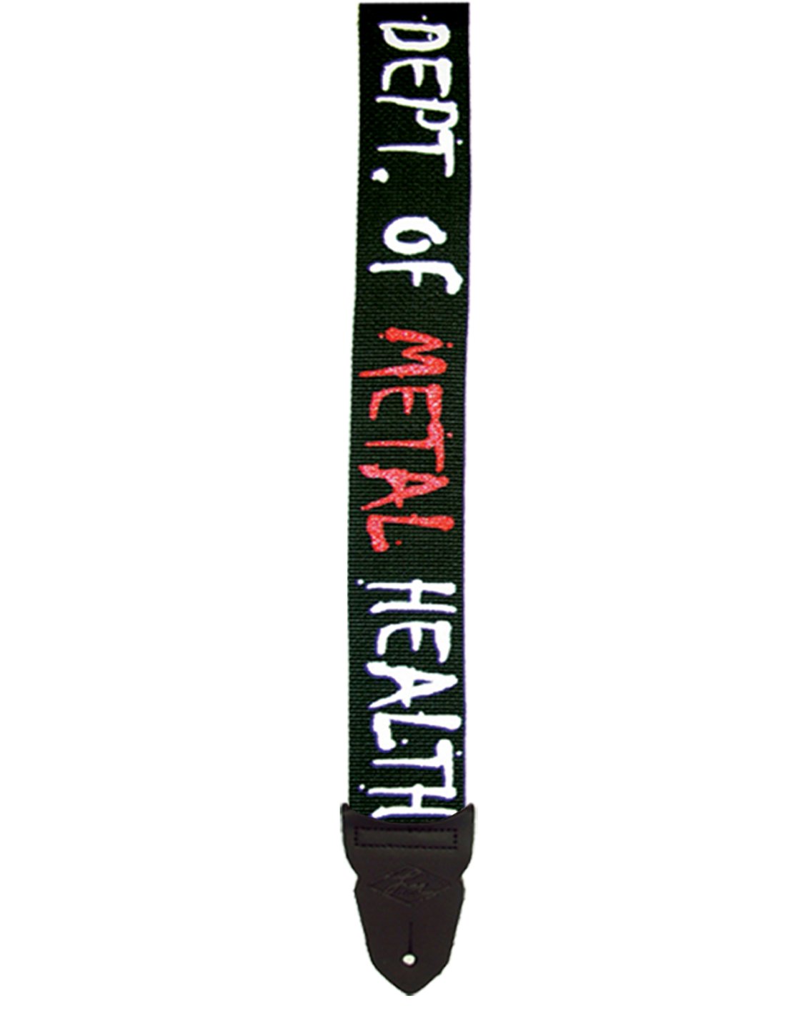 2” cotton guitar strap, leather ends 2” polyester guitar strap with print, leather ends Main FeaturesLength: 60” Width: 2” Material: Polyester, Leather Terminals Pattern: Metal Health