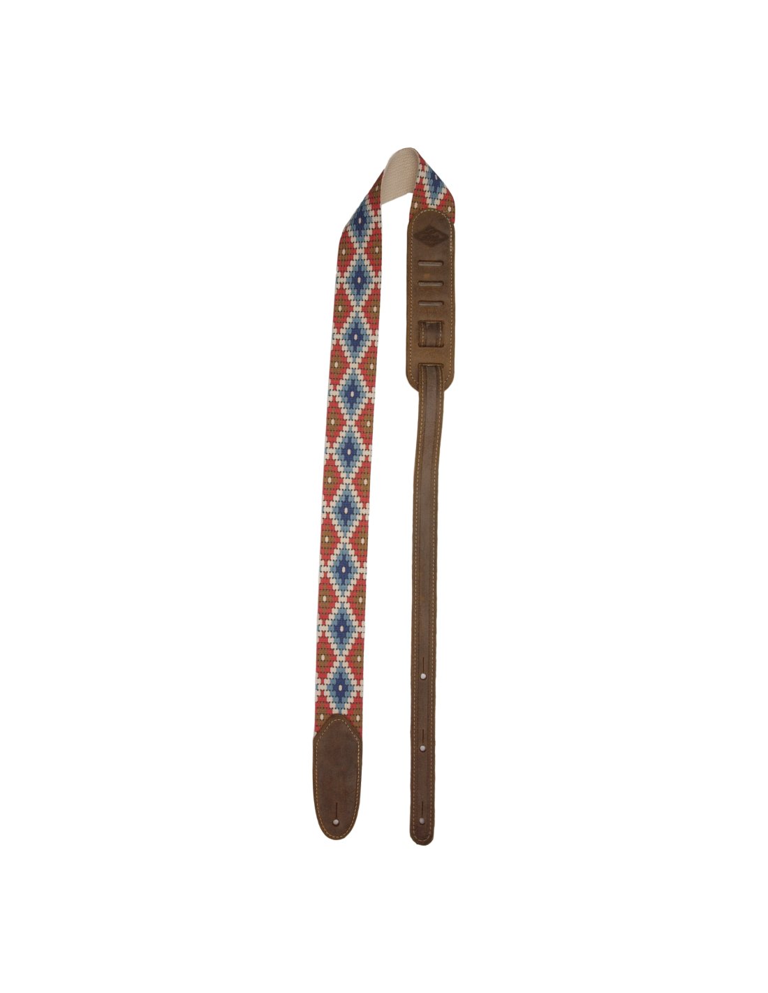 2” cotton guitar strap with aged suede ends Cotton guitar strap with aged suede ends Southwestern Inspired design Main Features Length: Adjustable from 44” to 58” Width: 2” Material. Printed cotton, aged suede terminalsFantasy: SW33