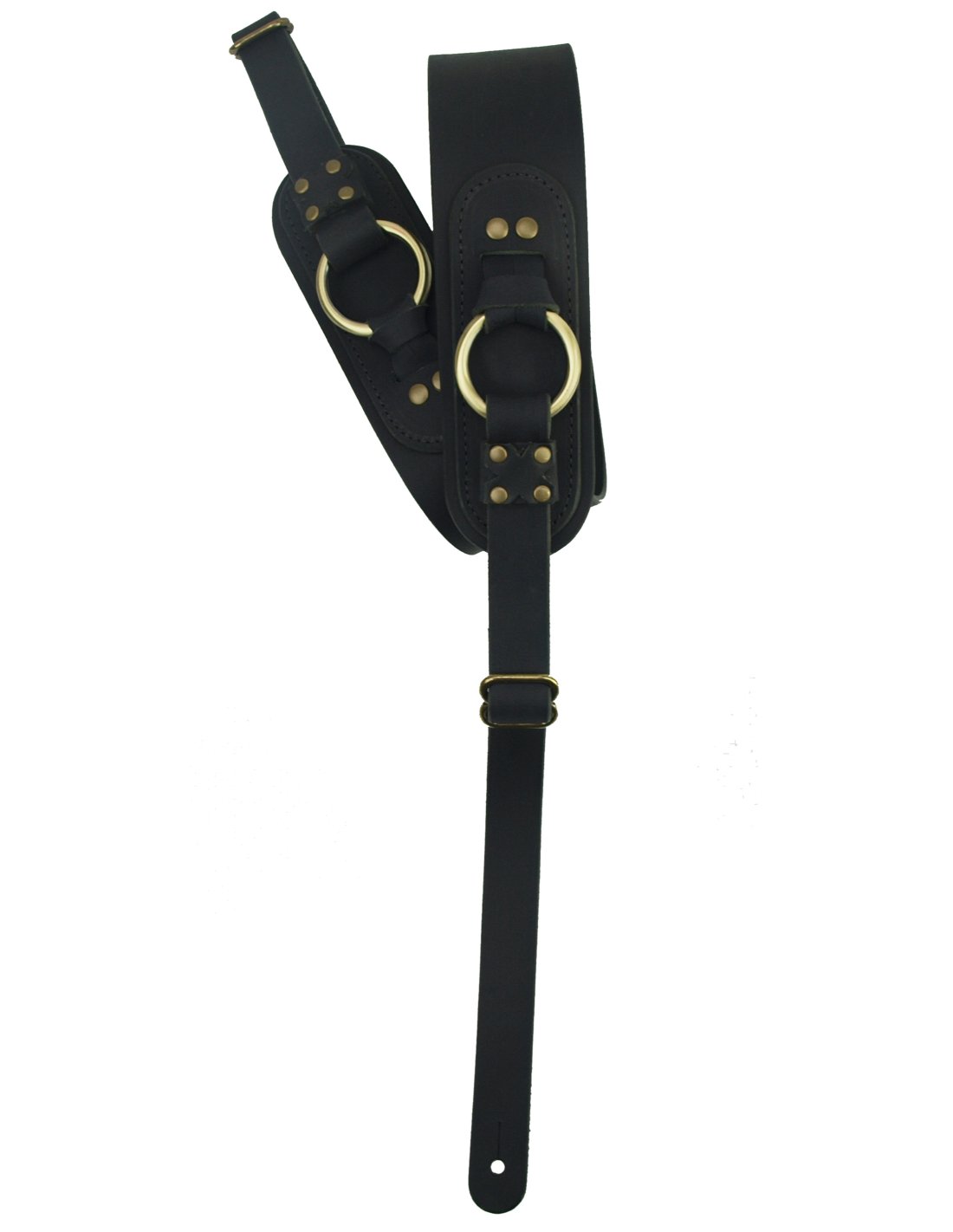 Genuine leather 2.5” guitar strap with metal hardware rings Genuine leather guitar strap with rings, metal hardware Main FeaturesWidth: 2.5” Material. Genuine leatherColor. Sable