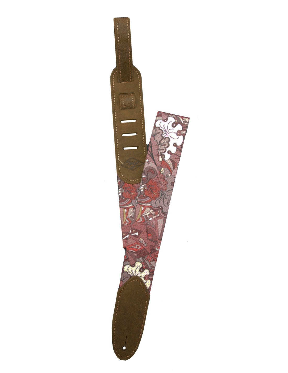 2” printed cotton guitar strap and leather ends 2” cotton guitar strap with direct print on the fabric and leather ends Main FeaturesLength: Adjustable 44” -58” Material: Cotton, Leather TerminalsColor: Red