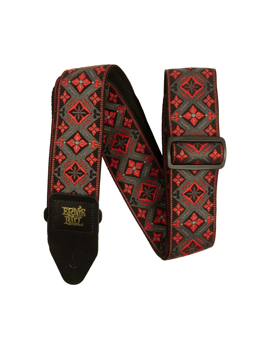 5346 is Ernie Ball's shoulder bag from the Jacquard series, in the elegant Red King finish. Made of polypropylene with premium leather ends, the 5346 has an adjustable length from a minimum of 104 cm to a maximum of 183 cm. Ideal for guitarists and bass players