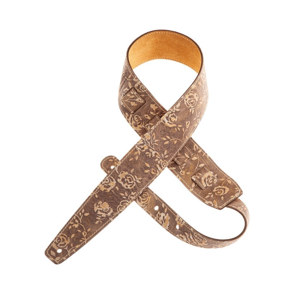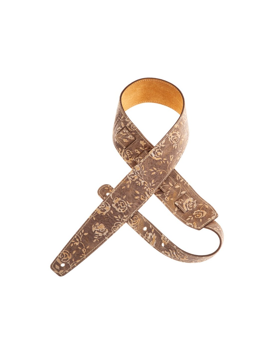 HOLES HS EMBOSSED WHITE ROSE 6 CM. Guitar and electric bass strap made of high quality genuine leather 100% Made in Italy, certified vegetable tanning, ecru stitching, suede inner lining, width 6 cm and adjustable length from 105 to 142 cm.